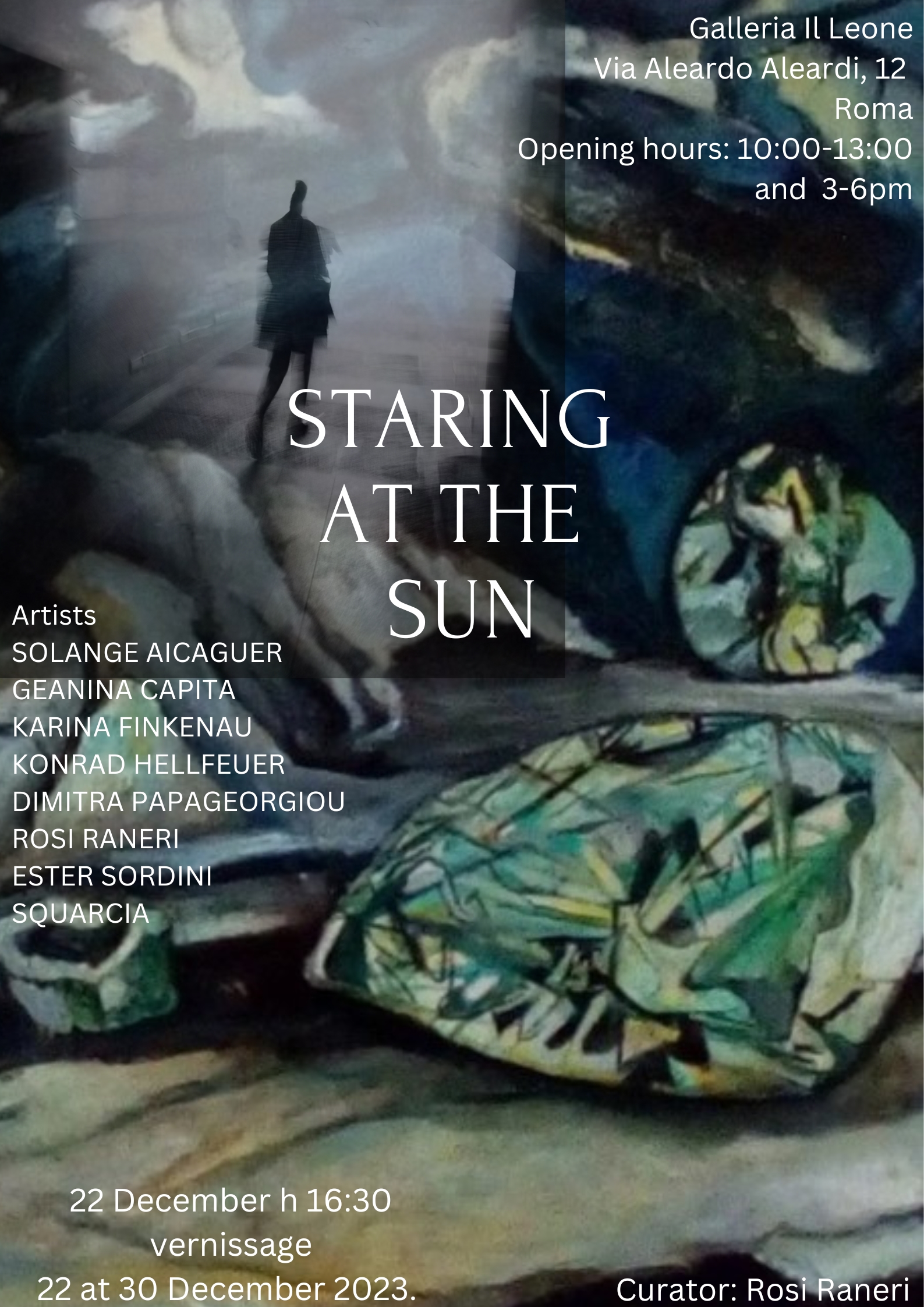 La mostra Staring at the sun intende sviluppare a livello visivo il pensiero dell’attesa intesa come rinascita e manifestare la potenza dello spirito assoluto come concausa delle forme sensibili, di un infinito atteso e percepito attraverso l orizzonte.
