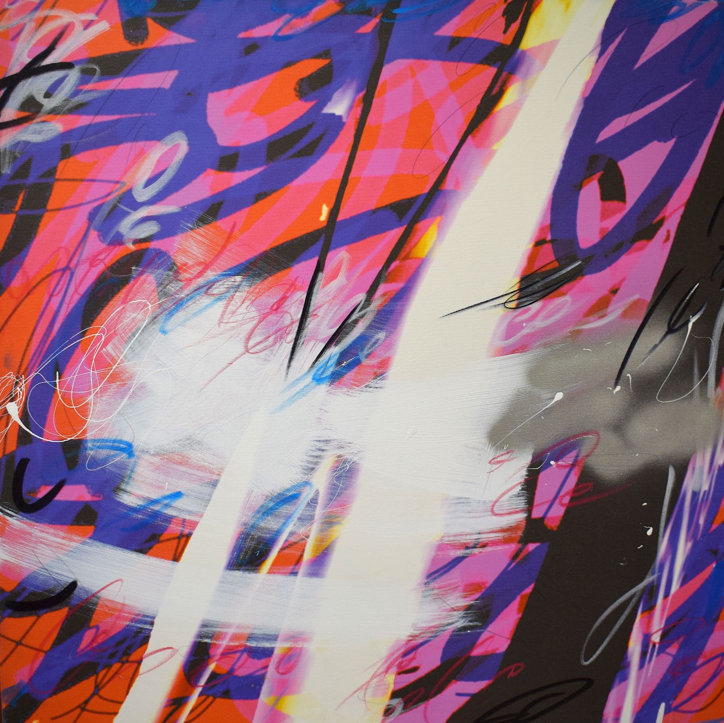 Nel testo critico Luca Beatrice scrive: “Bowie è il nume tutelare dell’arte di Giovanna Fra. Transiti, ritardi, passaggi da una stazione a un’altra, da un luogo a un non luogo, da un’ immagine all’altra rischiando di perdere il filo logico delle cose e perdersi. Memorie di immagini metropolitane oppure catturate sullo schermo del computer, reminiscenze pittoriche che a un certo punto si affidano a un vago ricordo, onirico e trasognato. Da diversi anni l’artista si interroga sui destini della pittura a partire dai suoi inizi e che oggi, pur mantenendo salde le radici nella tradizione aniconica italiana, è chiamata ad affrontare la complessa sfida con immagini che quasi si fanno da sole, sorgono per gemmazione, si ramificano e si sdoppiano, invadono la superficie spingendo lungo i bordi perimetrali. Se non avessimo scelto insieme il titolo di Station to Station la personale di Giovanna si sarebbe potuta chiamare H in corsivo inclinato, un segno molto simile a questo # che in ogni caso si pronuncia con l’iniziale h (muta nella lingua italiana) e nell’accezione contemporanea assume il ruolo di un nuovo segno del nostro alfabeto. Lo usiamo ovunque, per segnare parole chiave, hashtag deriva dall’inglese hash, cancelletto, e tag, etichetta, ed è aggregatore tematico con la funzione di aiutare gli utenti del web nel trovare argomenti e contenuti specifici. Fra riflette sulla potenza immaginativa ed evocativa di questo nuovo segno dandogli massima diffusione nella sua texture pittorico-digitale, segno che costituisce punto di partenza per la rielaborazione del linguaggio pittorico come è accaduto nel tempo, per esempio, con la forchetta di Capogrossi o con le tags di Keith Haring, la cui presenza ci rimanda senza dubbio allo stile di quel preciso artista.