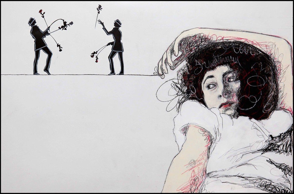 Nei suoi lavori - tecniche miste su carta – Stefania Boniotti è interessata all’ instabilità e provvisorietà della condizione umana del nostro tempo. Il funambolo decide di sfidare le leggi della fisica ed intraprendere con il solo ausilio della propria volontà un percorso incerto e instabile in cui la posta in gioco è la vita stessa.