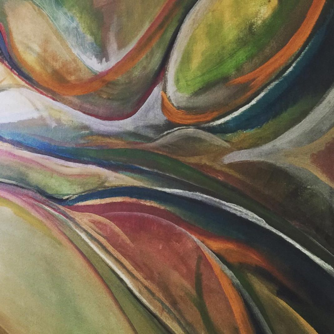 L’astrattismo formale entra in sinergia con elementi figurativi appena accennati, anche questi nati dal caso: una testa in movimento appena abbozzata, delle membra timidamente delineate, un occhio che si affaccia delicatamente sulla superficie pittorica fondendosi con l’ondeggiare del segno, avvalorano il carattere di sinestesia tra le varie arti, che trova ragion d’essere e denominatore comune nel movimento attraverso lo spazio”. (Laura Cianfarani)