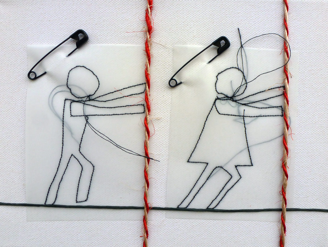 "APPESI AD UN FILO di Stefania Malferrari. Cerco percorsi attraverso la materia e i materiali, cominciando dall'archeologia delle forme e continuando attraverso la linea sottile di un filo. Si aggiunge poi la memoria delle relazioni, codificata per elementi minimi ed universali, costruita mediante il tragitto uomo-donna e ancora viva e pulsante quando si manifesta come presenza luminosa. E' così che i miei piccoli personaggi mi accompagnano nella mia ricerca artistica.(Stefania Malferrari)