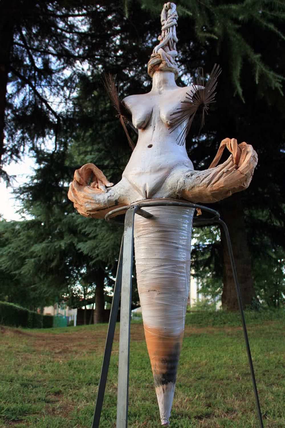 Stefania Pennacchio ci racconta di sé attraverso le Nerèidi: brucia nelle vene il sangue calabrese, mescolato dalle influenze della cultura giapponese nella tecnica della cottura della materia, che crea una mescolanza di citazioni e simbolismi senza confini spazio-temporali. La materia cresce come il sorgere della vita e pervade l’ambiente con la sua forza e il suo calore.