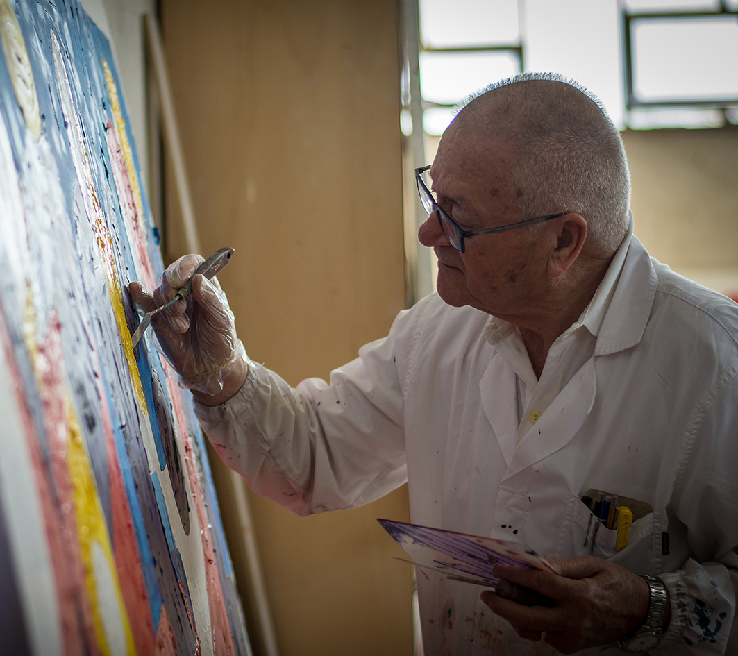 “Autentico artivista, ha ottenuto ampi consensi di pubblico e di critica per la sua arte indomita e premonitrice, immediata e profonda, capace di leggere i sussulti del nostro tempo” (P. Ballesi).