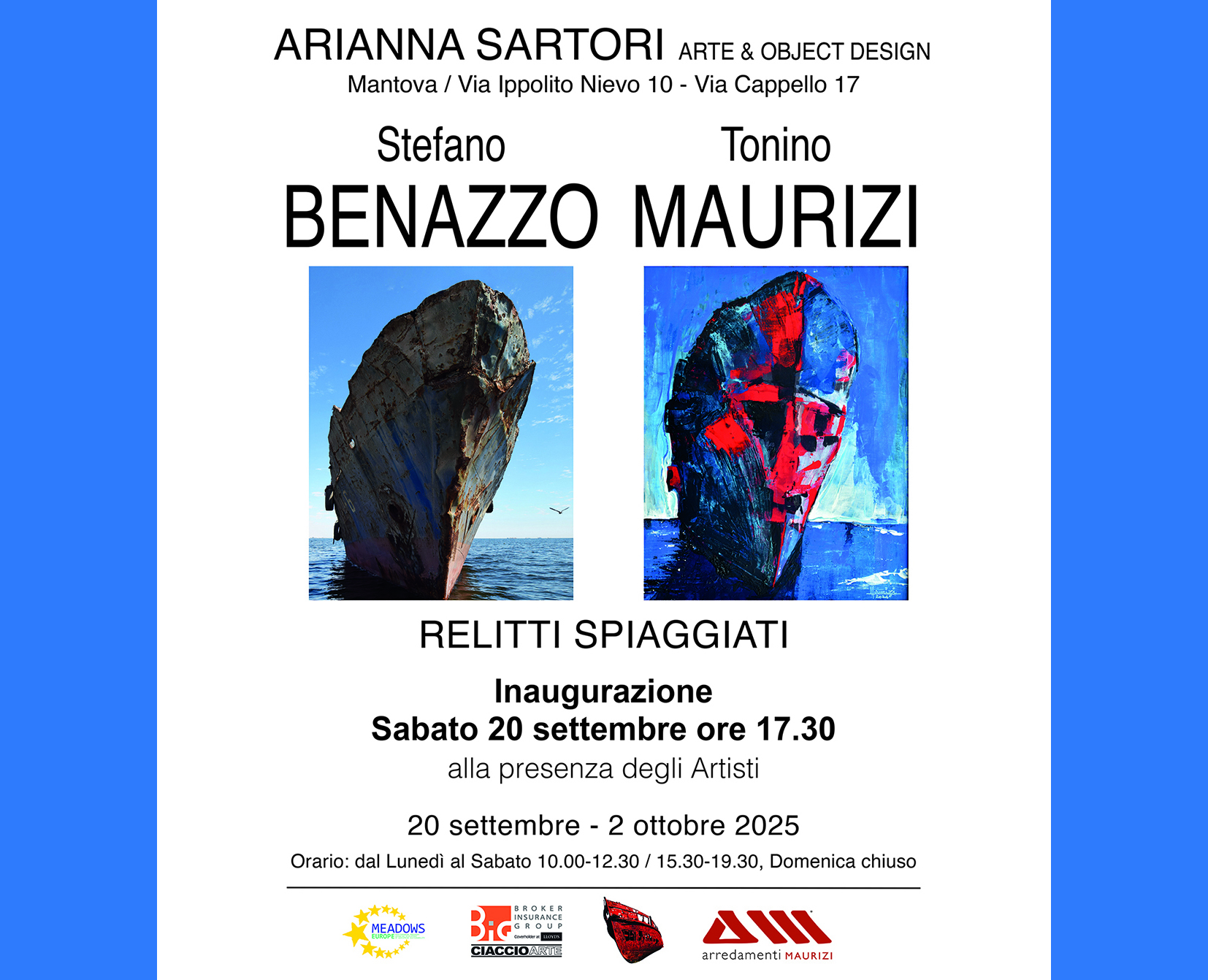 “Relitti spiaggiati” è la nuova mostra del fotografo Stefano Benazzo insieme al pittore Tonino Maurizi alla Galleria Sartori a Mantova, che si inaugurerà Sabato 20 settembre alle ore 17.30 alla presenza degli Artisti.