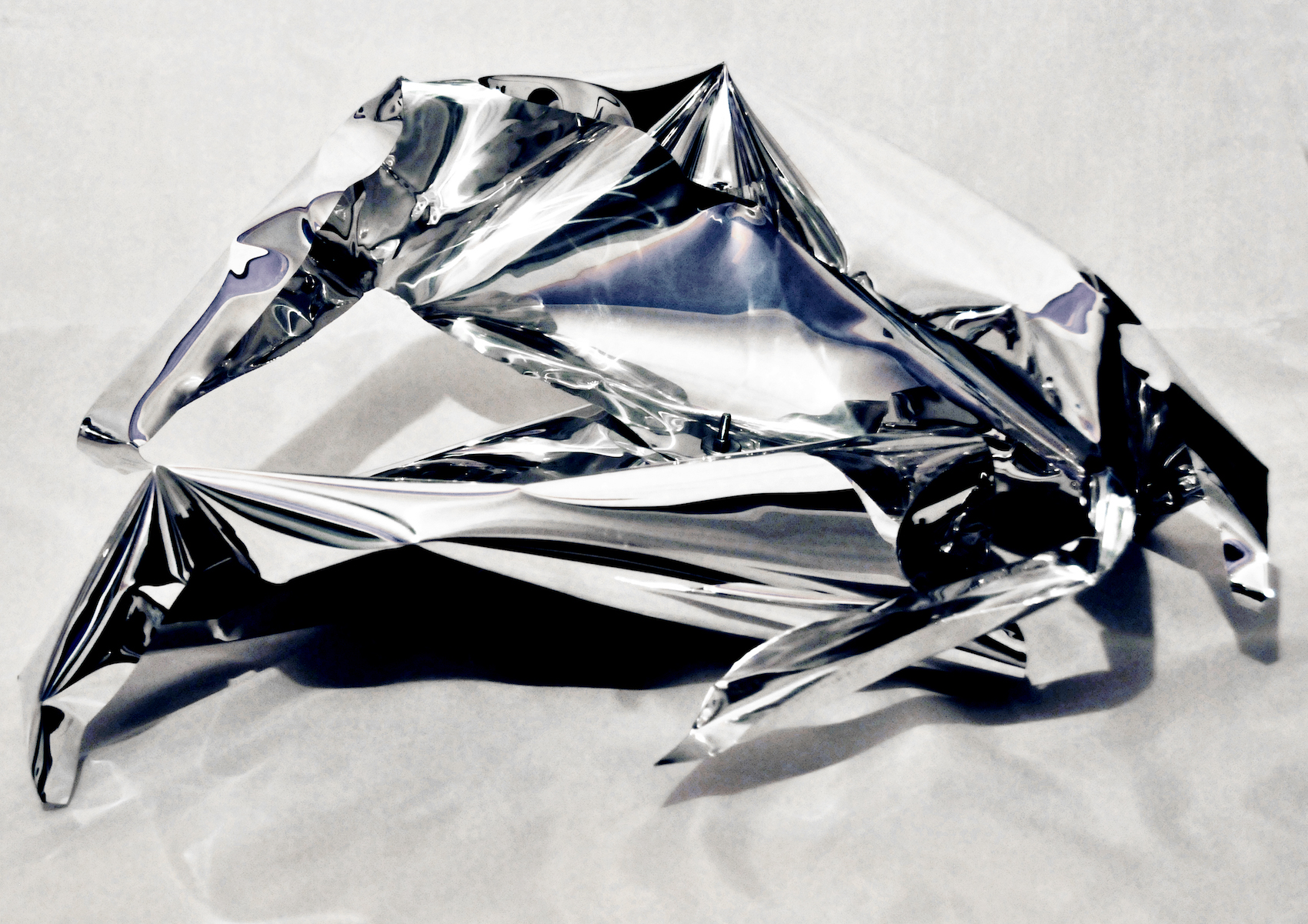 Il percorso espositivo è una selezione di opere storicizzate e altre inedite che rendono conto della coerenza della ricerca di questo artista. Troviamo il lavoro video del 2022 “Far before and after us”, un rito del fuoco realizzato tra vette innalzatesi da fondali primordiali. L’ha realizzato per la partecipazione alla Biennale di Venezia nella mostra “Pera + Flora + Fauna. The Story of Indigenousness and the Ownership of History” del padiglione dello stato del Perak – Malaysia (fino al 27 novembre agli Archivi della Misericodia). Un’altra opera da Biennale esposta è “The Ice Monolith” per il Padiglione Nazionale delle Maldive a Venezia nel 2013: un blocco di ghiaccio alpino lasciato sparire sotto gli occhi dei passanti, che allora colpì i media internazionali e ora figura su testi scolastici come esempio imprescindibile di arte a confronto con questioni climatiche. Reperti del riscaldamento globale sono le opere scultoree inedite “Monuments to the flow (of matter)”, flaconi in plastica recuperati, plasmati dal calore e innalzati su un piedestallo in marmo. Citando la loro autentica, sono “opere garantite per 1000 anni”: il tempo oltre l’essere umano. L’Isola di Bouvet nell’Antartide è ricreata da freddi accartocciamenti in alluminio a specchio schiacciati tra le mani e imbullonati. Quell’isola è considerata il luogo più remoto sul pianeta, ma per questo non scevro da fatti atomici. È poi presente una delle prime opere dell’artista, realizzata nel 1995 ma quanto mai attuale. È la registrazione di un’esplosione nucleare rallentata all’estremo: ne esce un suono simile a uno strumento ad arco, straniante e straziante, sintesi perfetta dell’essere umano che agita fatalmente le corde del pianeta.