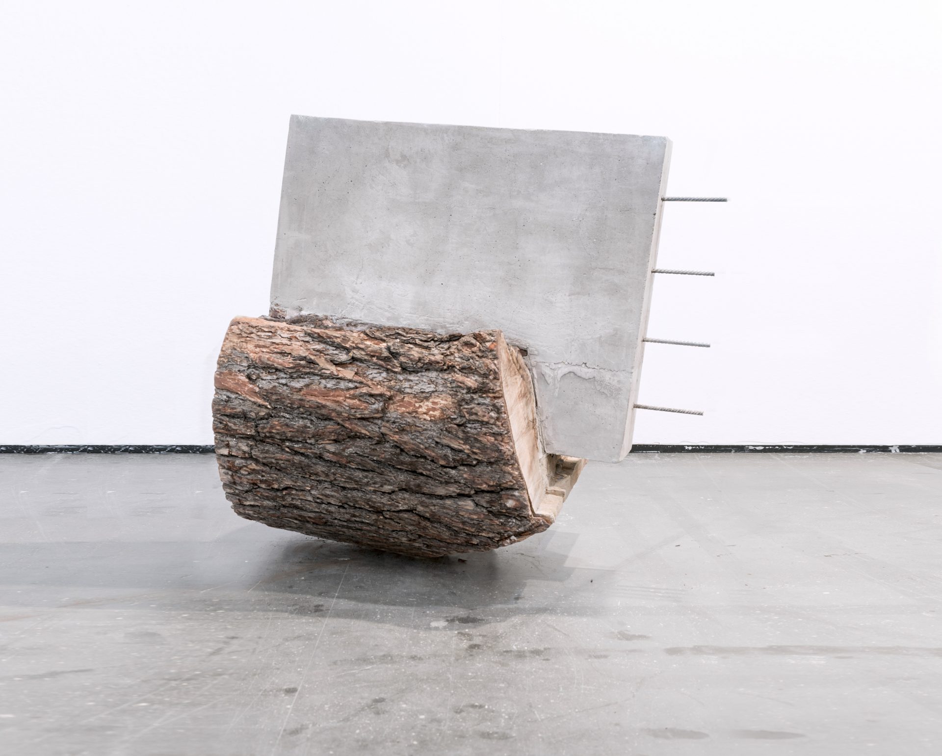 L’artista ha concepito tutte le opere a partire da tronchi e pezzi di corteccia di alberi raccolti sul ciglio della città, tutti deperiti e svuotati al loro interno a causa del lavorio di putrefazione dovuto alle carie lignee. Ed è proprio da questo vuoto che nasce il processo scultoreo dell’artista, dall’avvicinamento alle masse arboree deteriorate, dall’azione di rigenerazione attraverso innesti cementizi, dal riempimento delle cavità con costruzioni architettoniche. Laddove c’è assenza, l’artista impone una presenza costruttiva.