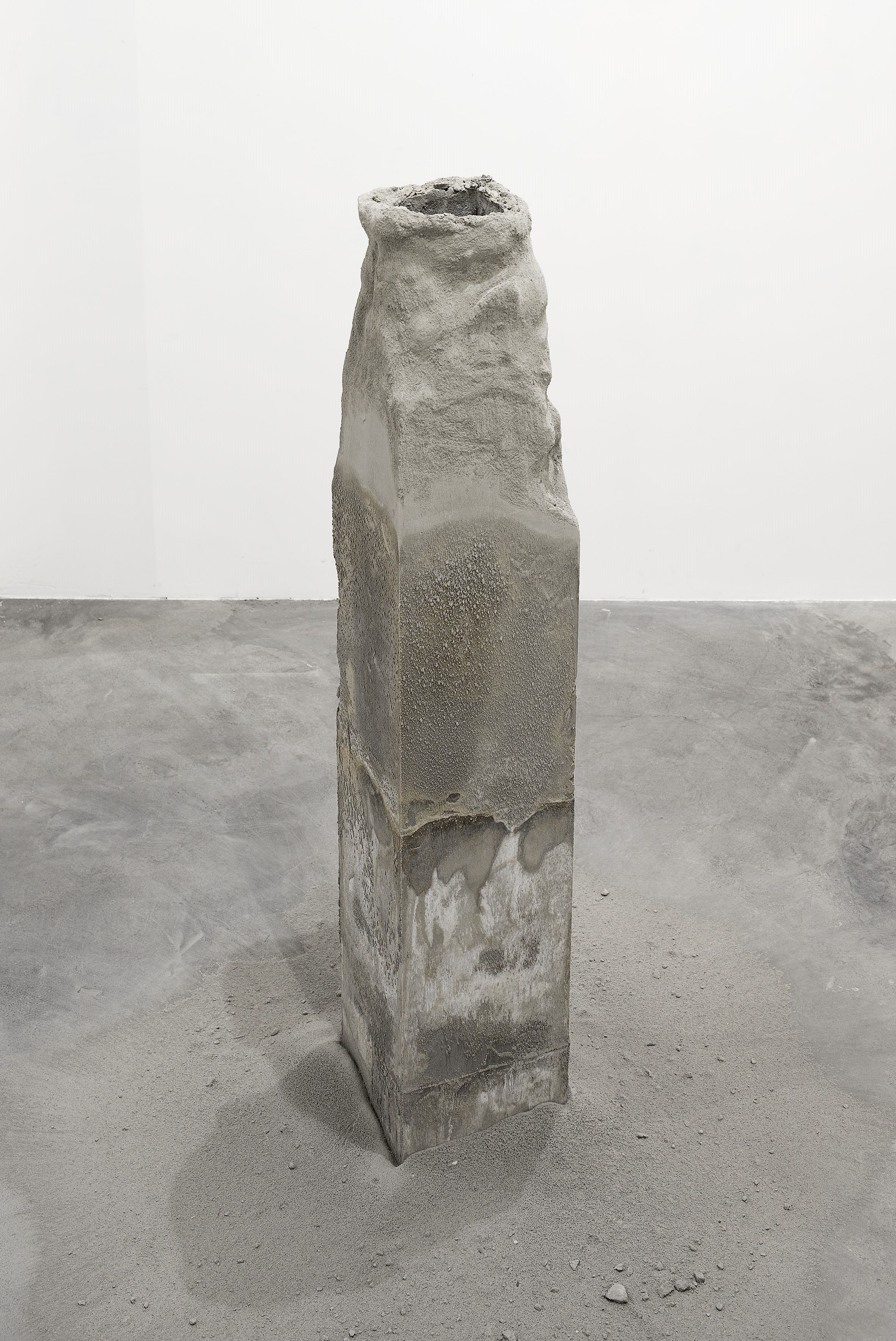 Stefano Canto ha ragionato su tutto questo, selezionando un elemento emblematico dello spazio urbano, un modello architettonico le cui radici sono ben salde nelle antiche civiltà del Mediterraneo e del Medio Oriente. Si tratta della colonna, le cui tracce, se si esclude il cul-de-sac di un certo citazionismo postmoderno, si perdono nella prima metà del Novecento, per opera dell’architettura razionalista. Oggi, la sua presenza, distante dalla tradizionale forma e spogliata dall’obbligo della rappresentazione del potere, è ridotta a pilastro funzionale, diventando forma organica dell’abitare, volume democratico, che rappresenta una forma archetipa della cultura visiva condivisa. Attraverso la costruzione di un ragionamento organico, la colonna diventa metafora della società, rappresentata da un monolite di ghiaccio che scioglie e che allude all’attuale processo di oblio che subiscono le immagini nell’odierna cultura mediatica.
