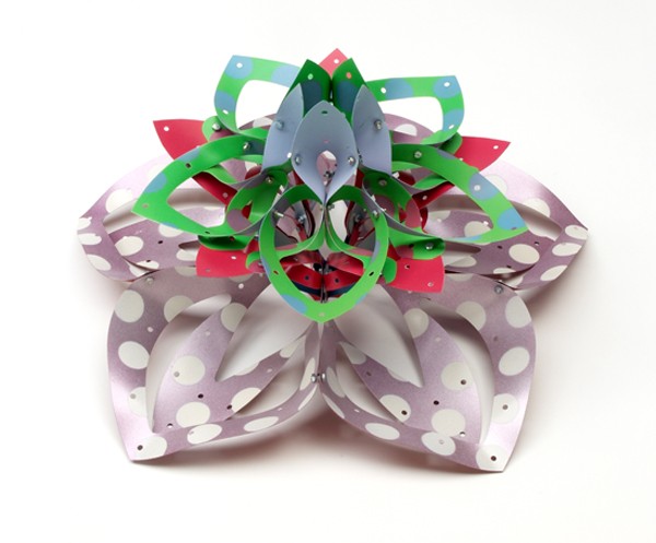 Questo gioco ininterrotto tra metodo e libertà creativa, ordine e caos si rinnova nelle sculture, “fiori” che Capuzzi realizza montando, in alcune delle infinite possibili combinazioni, fogli di policarbonato tagliati in tre formati diversi derivati per deformazione da un unica forma e dipinti a mano con colori brillanti. Belli e perversi, questi “fiori” sono un ulteriore esito dell' interesse di Capuzzi per l'arte combinatoria e del suo dialogo a distanza con il minimalismo. Solo apparentemente contraddetto, questo grande capitolo della scultura contemporanea è per Capuzzi un riferimento obbligato, per le sue ricerche sulla serialità (Sol LeWitt) e sul senso “antiformalista” della piega (Robert Morris), che reintroduce la complessità nell'ordine, l'imprevedibilità dell'organico nella geometria dell'inorganico.