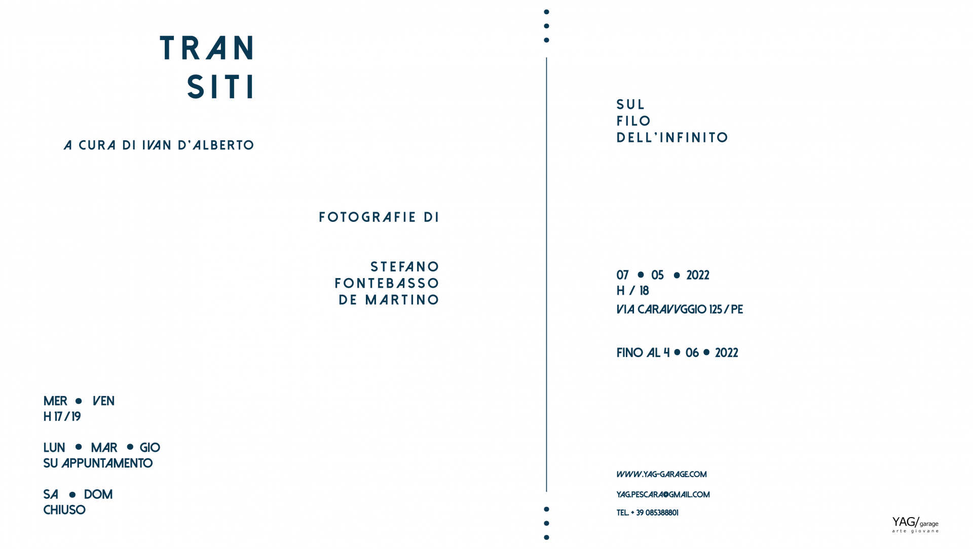 TRANSITI | sul filo dell’INFINITO è il titolo della mostra di Stefano Fontebasso De Martino, artista romano che opera principalmente attraverso il linguaggio fotografico.