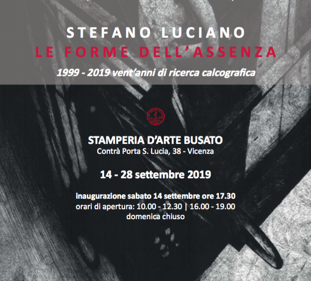 Si inaugura a Vicenza una mostra di Stefano Luciano. L’esposizione si compone di 50 opere calcografiche di grandi dimensioni, realizzate tra il 2006 e il 2019 utilizzando le tecniche incisorie fondamentali: vernice molle, acquaforte, puntasecca. Le opere in mostra sono state stampate presso la Stamperia d’Arte Busato, che è anche la sede della mostra e che è situata all’interno di un palazzo del ‘500, nelle vicinanze del Teatro Olimpico di Vicenza.