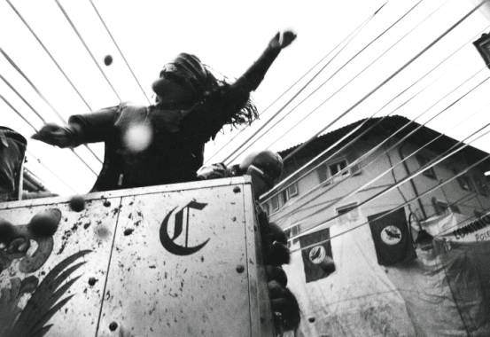 In questo reportage l’autore ha invertito la tradizionale rappresentazione fotografica del Carnevale scattando in bianconero per esaltare la durezza della Battaglia ed utilizzando unicamente un grandangolo con lo scopo di portare chi guarda le fotografie direttamente all’interno della scena.