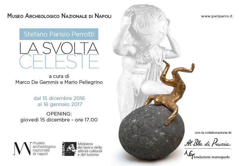 Giovedì 15 dicembre, al Museo Archeologico di Napoli, nella sala del Servizio Educativo al piano terra, si inaugura la mostra “La svolta celeste” la nuova personale di Stefano Parisio Perrotti a cura di Marco De Gemmis e Mario Pellegrino e con la collaborazione della galleria d’arte Al Blu di Prussia e della Fondazione Mannajuolo e accompagnata da un catalogo con testi di Marco De Gemmis, Simone Foresta e Ludovico Solima.