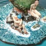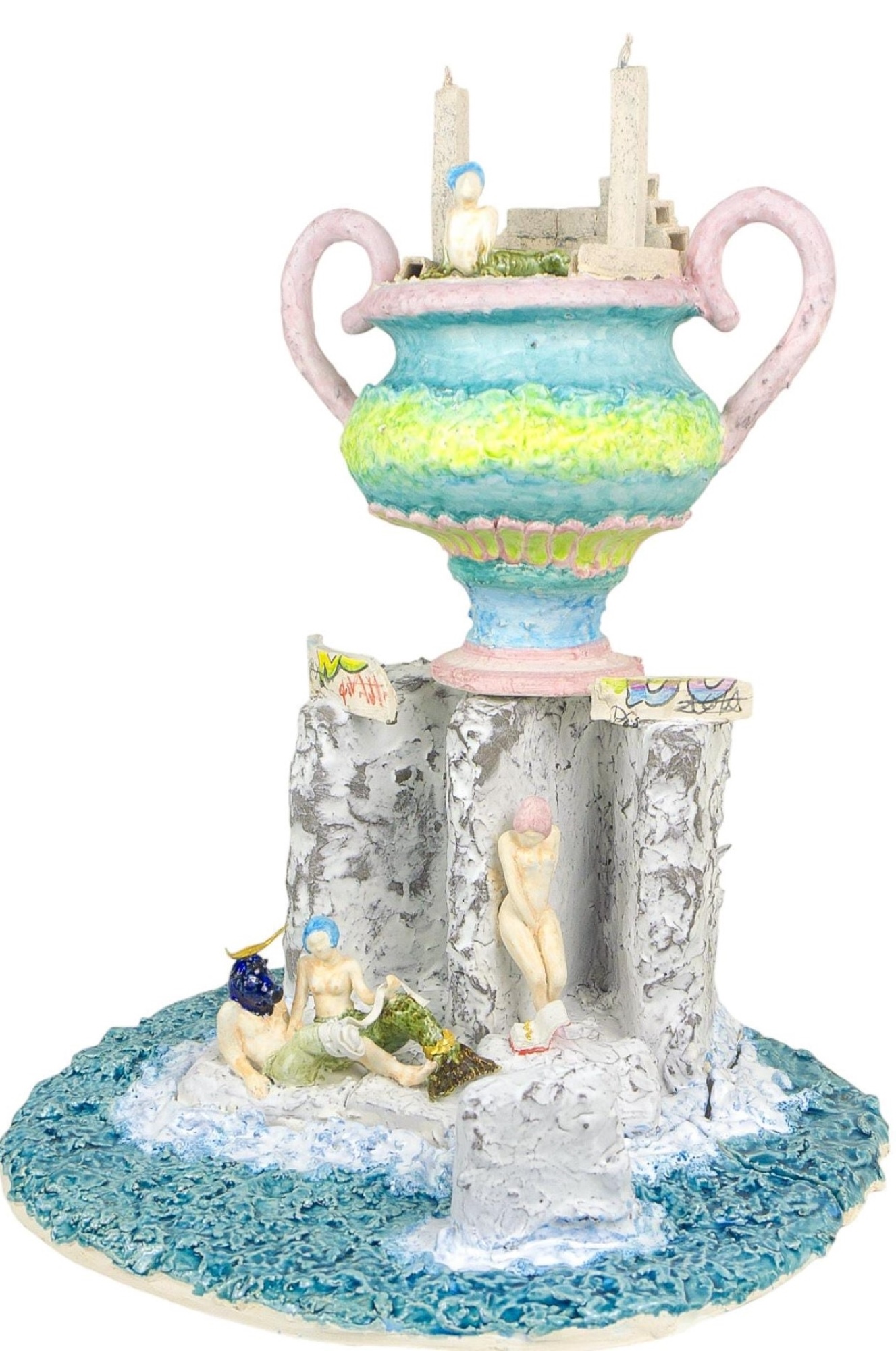 Concepiti in piena continuità con la propria ricerca plastica, i gruppi scultorei in mostra citano e decostruiscono il loro rimando alla Porcellana di Capodimonte, quale materia trasfigurata nella sua estetica rocaille. Un’idilliaca ἀναμόρφωσις scultorea che, nella lettura curatoriale di Rossella Della Vecchia e Giorgia Loccarini, va a “ricostruire” la sfuggente atmosfera di un Olimpo postmoderno, rintracciato tra le labroniche insenature rocciose lambite da acque limpide. Ed è in questi luoghi, idealmente incontaminati, che prende forma la personale cosmogonia di Stefano Pascolini, emblematicamente cristallizzata in oasi naturiste al margine di fenomeni di abbandono e degrado, siglati da spasmodici graffiti e dalle macerie delle infrastrutture turistiche.