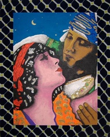 I dipinti di varie dimensioni, realizzati come di consueto dall’autore su tessuti particolari che incorniciano l’immagine, sono ispirati da fotogrammi di vecchi film d’epoca ovviamente rivisitati e riproposti con l’ironia che da sempre contraddistingue il lavoro dell’artista