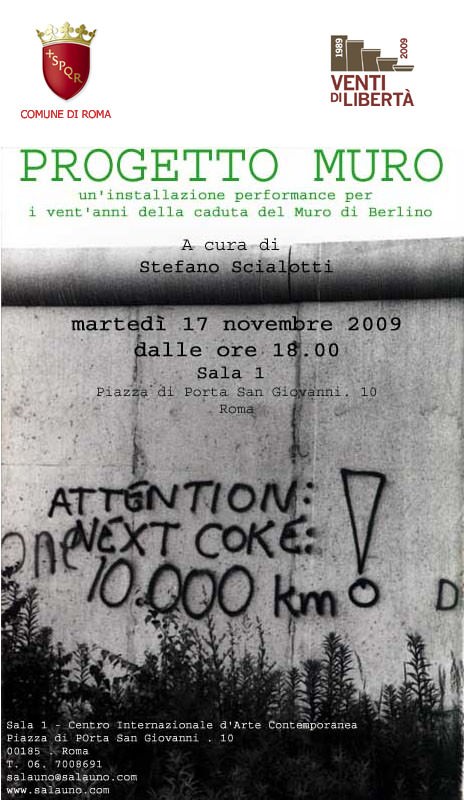 Nell’ambito delle manifestazioni culturali promosse dal Comune di Roma per il ventennale della caduta del muro di Berlino, Sala 1 – Centro Internazionale d’Arte Contemporanea è lieta di presentare “Progetto Muro” a cura di Stefano Scialotti.