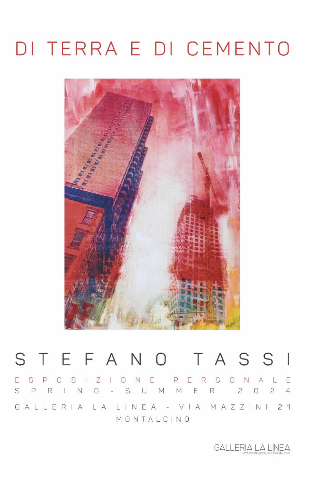 Dalle ore 18,00 del 20 aprile2024, sarà allestita la nuova esposizione personale di STEFANO TASSI alla Galleria La Linea di Montalcino (SI) - Via Mazzini 21, dal titolo “DI TERRA E DI CEMENTO”.