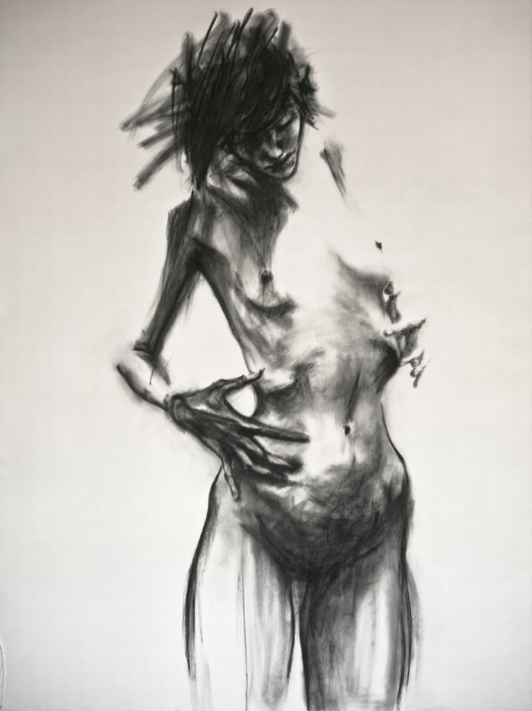 Configura un corpo chiuso nell’adorazione di se stesso, della propria tagliente bellezza. Questo ciclo pittorico restituisce la santità al suo antico orizzonte di sofferenza, alterità, e solitudine. Un sacro cuore di vetro, visibile attraverso la pelle che si tende sulle ossa. Stella Stefania Gagliano crea gli scarni altari di coloro che sono caduti, e che si possono vedere guardando attraverso lo specchio.