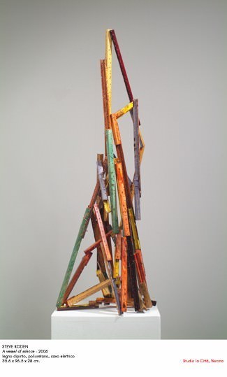 I lavori dell’artista californiano sono delle altrettante scommesse vinte sui rapporti tra forma, colore e musica. In un certo senso si può dire che Roden sia riuscito a realizzare il progetto di Kandinsky di usare come modello del linguaggio dell’arte, quello musicale, attraverso la “risonanza interiore”. Ma, in effetti, il gioco diventa molto più complesso e in equilibrio tra intermedialità e rimandi reciproci. I livelli di “traduzione” che l’artista inventa lavoro dopo lavoro, non vogliono mai uniformarsi ad un codice, non vogliono chiudersi in una formula univoca. Mantengono la libertà espressiva e combinatoria di opere dirette e spontanee. Non si avverte mai nulla di particolarmente “costruito”, anche se è chiaro che Steve Roden abbia acquisito in oltre un decennio d’ esperienza, un livello di capacità linguistica sofisticato e maturo.