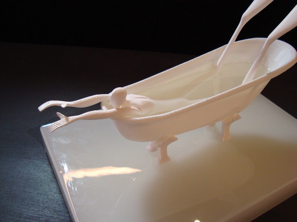Francesca Manca di Villahermosa, ex modella professionista che non si è mai limitata a stare dall’altra parte dell’obiettivo, ma portando con sè una Minolta Reflex ha carpito negli anni i segreti dei grandi fotografi che l’hanno immortalata, tra cui Giovanni Gastel, Andrè Carrara e Oliviero Toscani, presenta le sue elaborazioni fotografiche stampate su banner. Corpi immersi nell’acqua, in cui nè l’acqua nè il corpo umano sono i veri protagonisti, ma la simbiosi tra essi.
