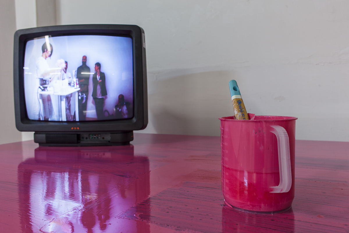 Eleonora Roaro (Varese, 1989) ha realizzato per la mostra una video installazione dedicata ad Edith, la moglie di Stoner, in cui porta alla luce tutte le fobie del personaggio, una donna distante, anaffettiva, che non si fa “toccare” in tutti i sensi. Attraverso una sineddoche – Edith è rappresentata solo dal suo occhio ceruleo – diventa la “telecamera di sorveglianza” delle vite di chi la circonda. In esposizione anche il video-documento di una performance in cui ha interpretato Edith in uno dei momenti topici del romanzo dipingendo di rosa, in preda a una sorta di controllata follia, la scrivania e tutti gli oggetti di Stoner.