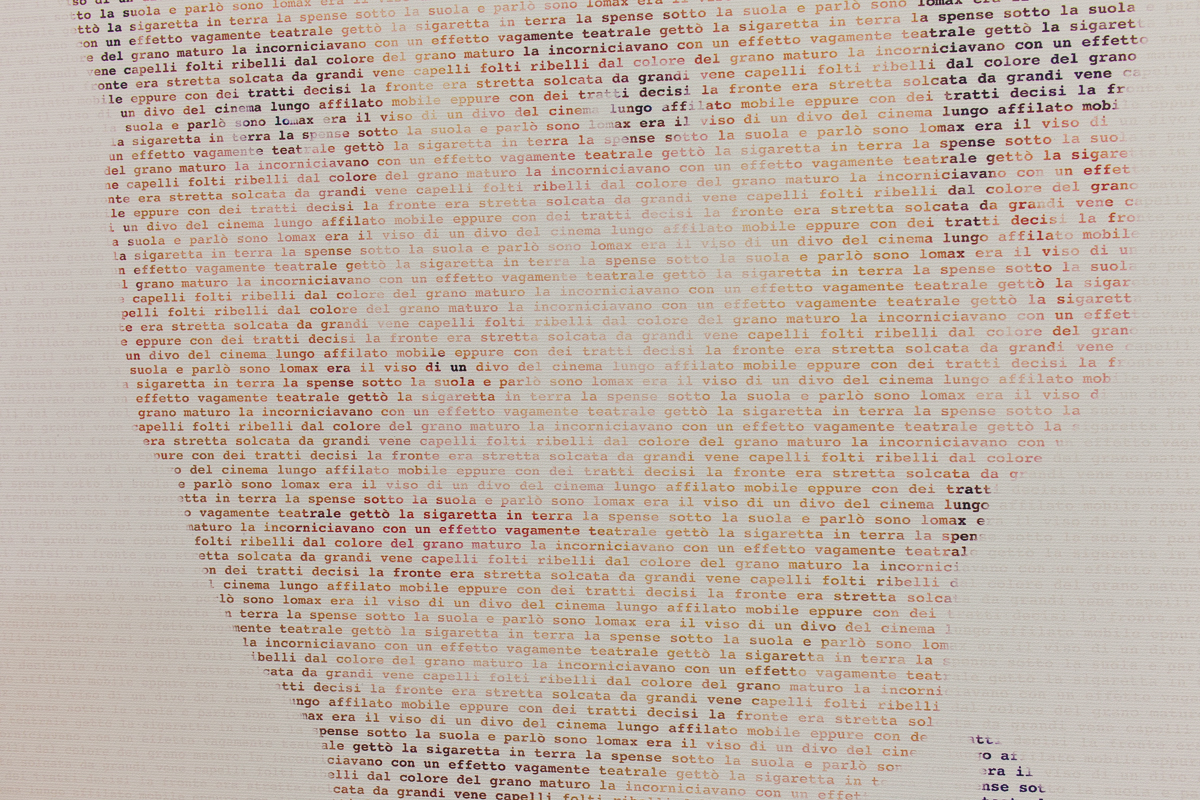 Zino (Teramo, 1973) – noto per le opere realizzate con i lego e la realtà aumentata – qui interpreta l’antagonista di Stoner e lo immortala nel momento in cui fa la sua prima apparizione nel romanzo: fisicamente menomato, Lomax ha un viso da attore del cinema sul quale l’artista riporta le parole della sua presentazione all’interno del testo. Tra le righe, una frase metalinguistica attraverso la quale l’artista dà forma a quello che sarebbe stato il pensiero di Lomax nei confronti del romanzo stesso: “Stoner è un libro del cazzo”.