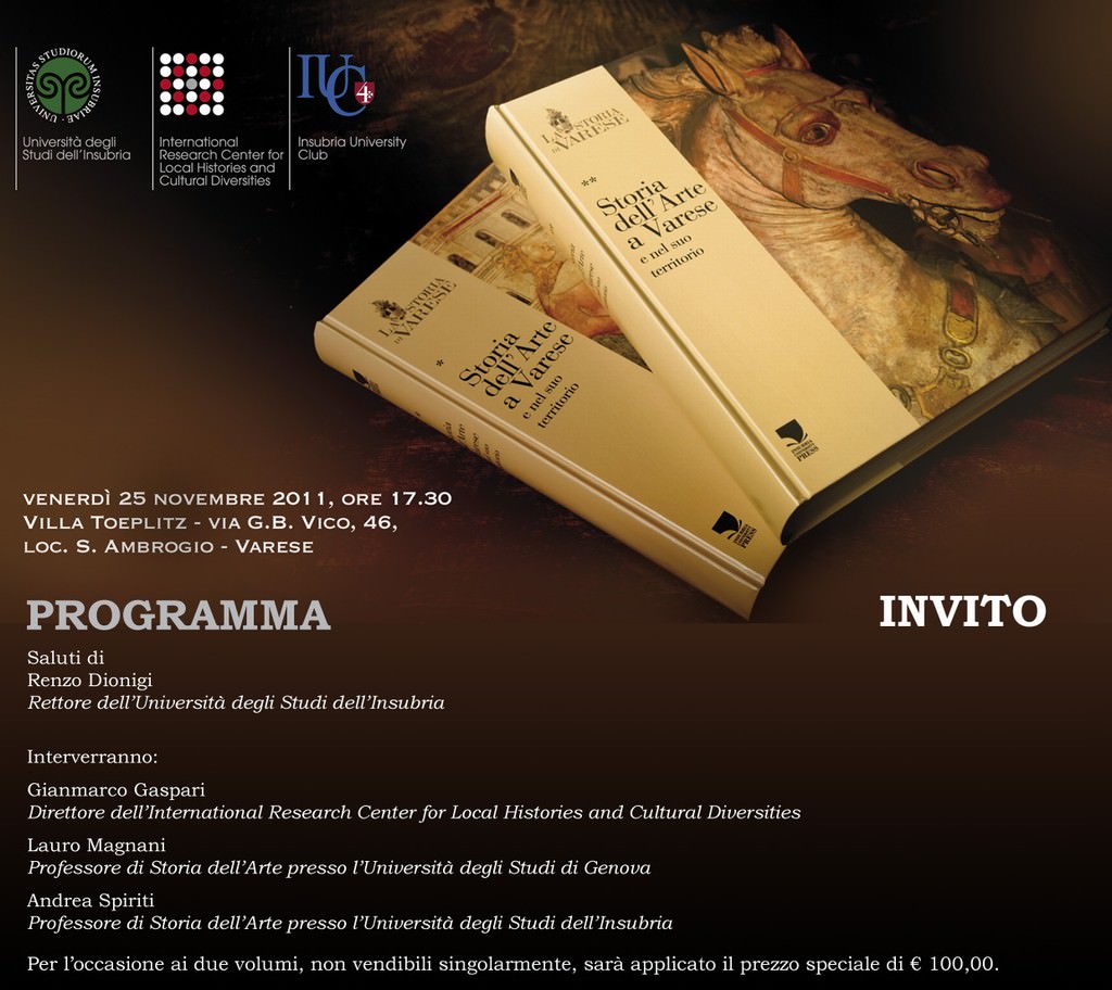 presentazione della pubblicazione Storia dell’Arte a Varese e nel suo territorio (progetto diretto e coordinato da Maria Luisa Gatti Perer, 2 voll.), nell’ambito della collana “La Storia di Varese”, curata dal Centro Storie Locali.
