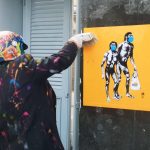 Nella mattinata dell’11 maggio, grazie all’intervento urbano di Salvatore Iacono, gallerista/attivista e fondatore di Ischia Street Art, discussa anti-galleria underground sita nel cuore dell’isola, Street Art File Print esce dalle pareti della gallery per invadere il centro abitato. Salvatore compie un atto sul filo dell’illegalità, attuando la sua performance con una semplice colla da manifesti e attaccando un poster dell’artista Biodpi (Fabio Della Ratta) dal titolo “Hunters” (Cacciatori), raffigurante due primati con mascherine e una busta della spesa col marchio della nota catena di supermercati Decò.