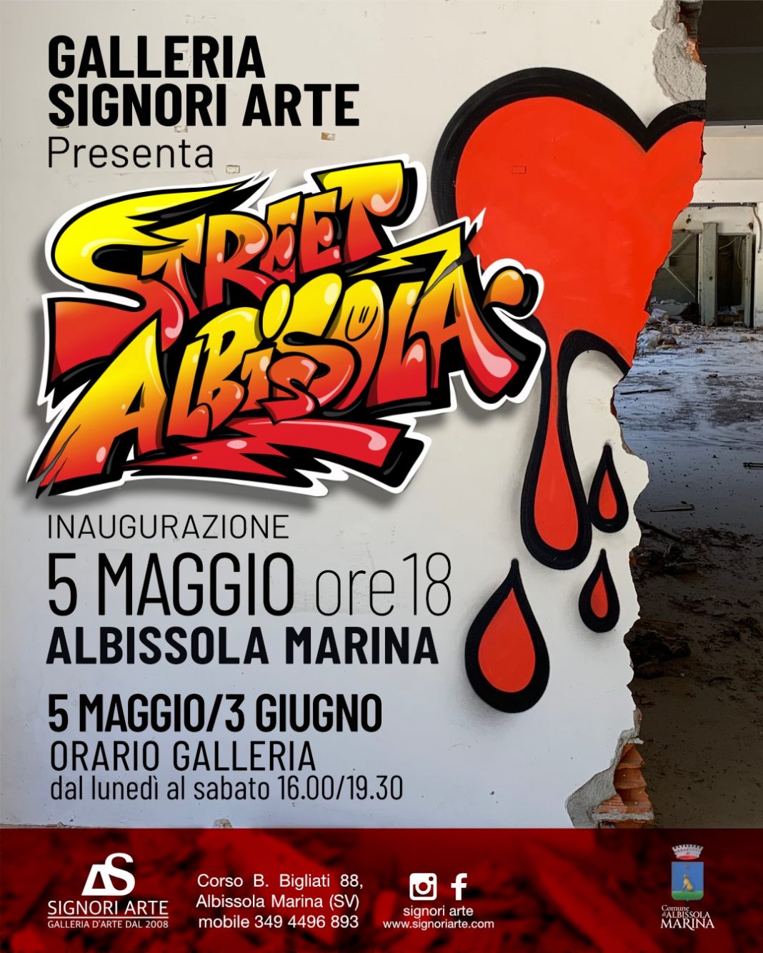 Il 5 maggio, alle ore 18.00, presso la Galleria Signori Arte di Albissola Marina, verrà inaugurata la mostra “StreetAlbissola” nella quale saranno esposte le opere di quattro artisti del panorama italiano contemporaneo: Lafoz, SteReal, the Wal e Misterpollo. È la prima volta che una galleria albisolese sceglie di dedicare i suoi spazi alla Street Art.