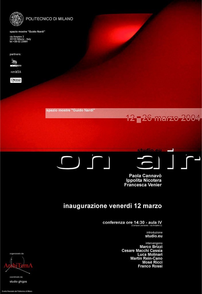 La mostra “On Air” nasce nel gennaio 2003 a Lisbona in occasione della rassegna “Sala de Projecto”, spostandosi poi a Torino nel Castello del Valentino e successivamente a Firenze nello Spazio Espositivo di Santa Verdiana.