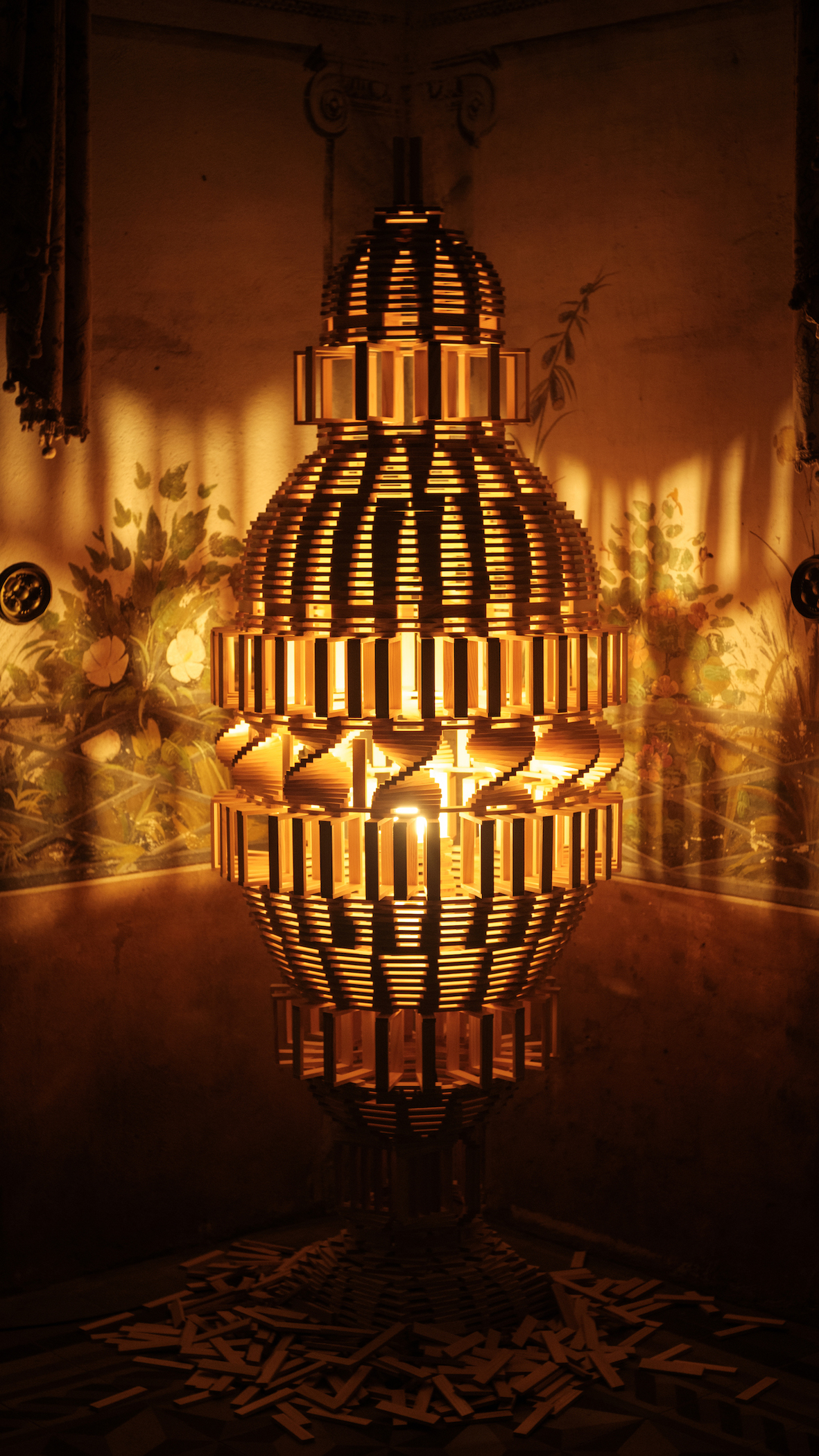Ogni installazione è priva di colla o adesivi e i mattoncini Kapla dai quali è