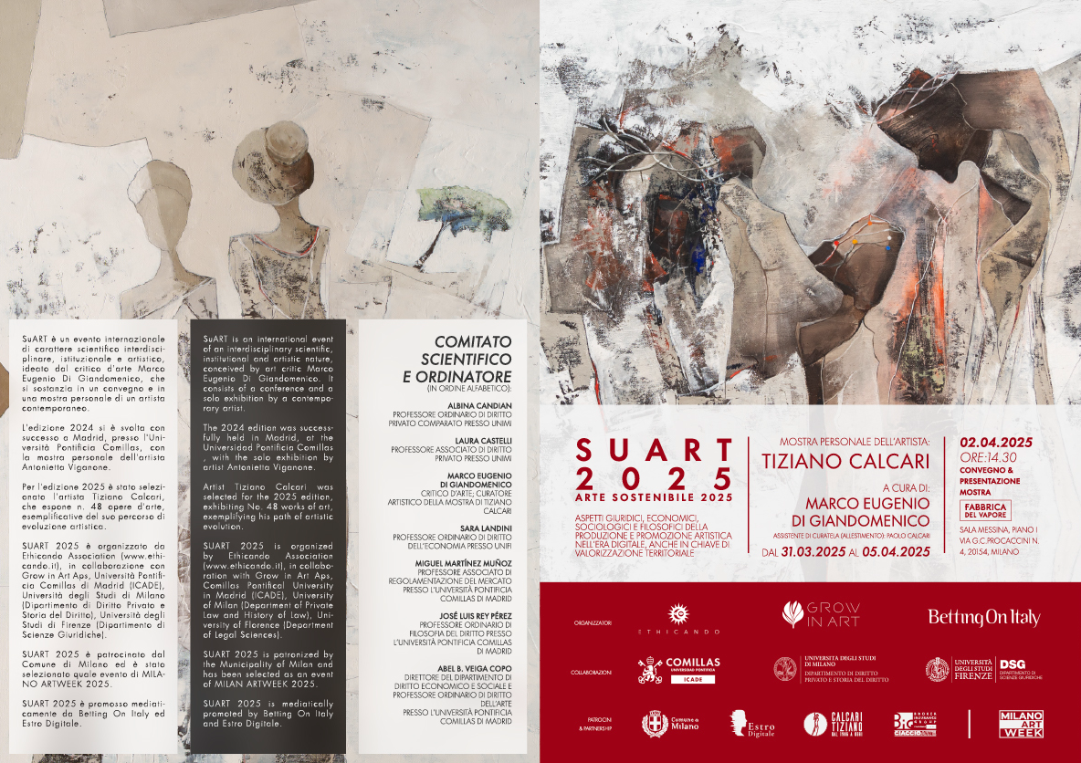 SUART 2025 è organizzato da Ethicando Association (www.ethicando.it), in collaborazione con Grow in Art Aps, Università Pontificia Comillas di Madrid (ICADE), Università degli Studi di Milano (Dipartimento di Diritto Privato e Storia del Diritto), Università degli Studi di Firenze (Dipartimento di Scienze Giuridiche).
