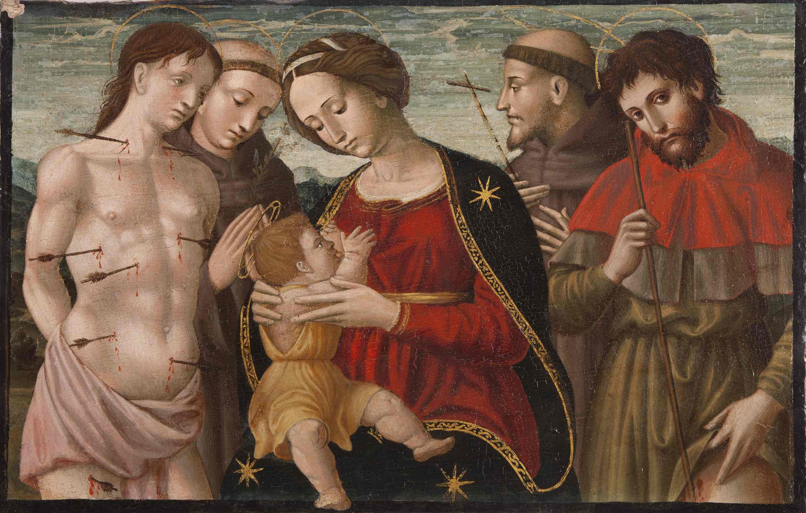 Si tratta per la maggior parte di opere provenienti dalle collezioni civiche marchigiane, dove non mancano capolavori di autori come Antonio da Fabriano, Pietro Alamanno, Francesco Guerrieri, Pietro Liberi e Ferdinand Voet che tra il XV e il XVII secolo hanno testimoniato questo fenomeno di culto, dedicando le rappresentazioni soprattutto a san Giacomo Maggiore e san Rocco, patroni dei pellegrini, e illustrando l’abbigliamento tipico dei devoti sia prima che dopo il periodo della Controriforma. Maria Giuseppina Muzzarelli per la prima volta studia infatti le caratteristiche delle vesti che connotano i pellegrini consentendo di riconoscerli durante il tragitto da loro itinerario.
