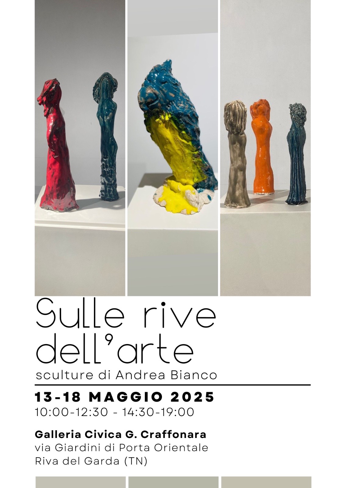 Mostra personale di scultura dell’artista bolzanino Andrea Bianco. Senza seguire schemi predefiniti l’artista rappresenta il suo modo di vedere il mondo solamente ispirandosi a ciò che gli infonde gioia e che spera possa condividere con i visitatori. Bianco utilizza diversi materiali e tecniche.