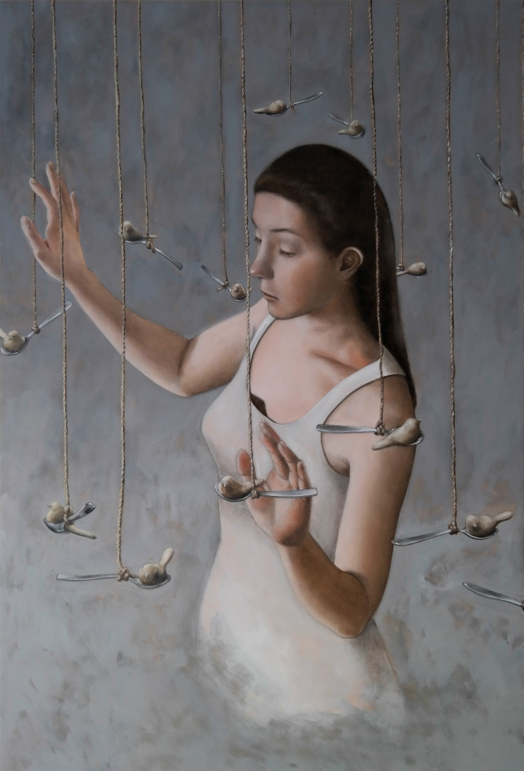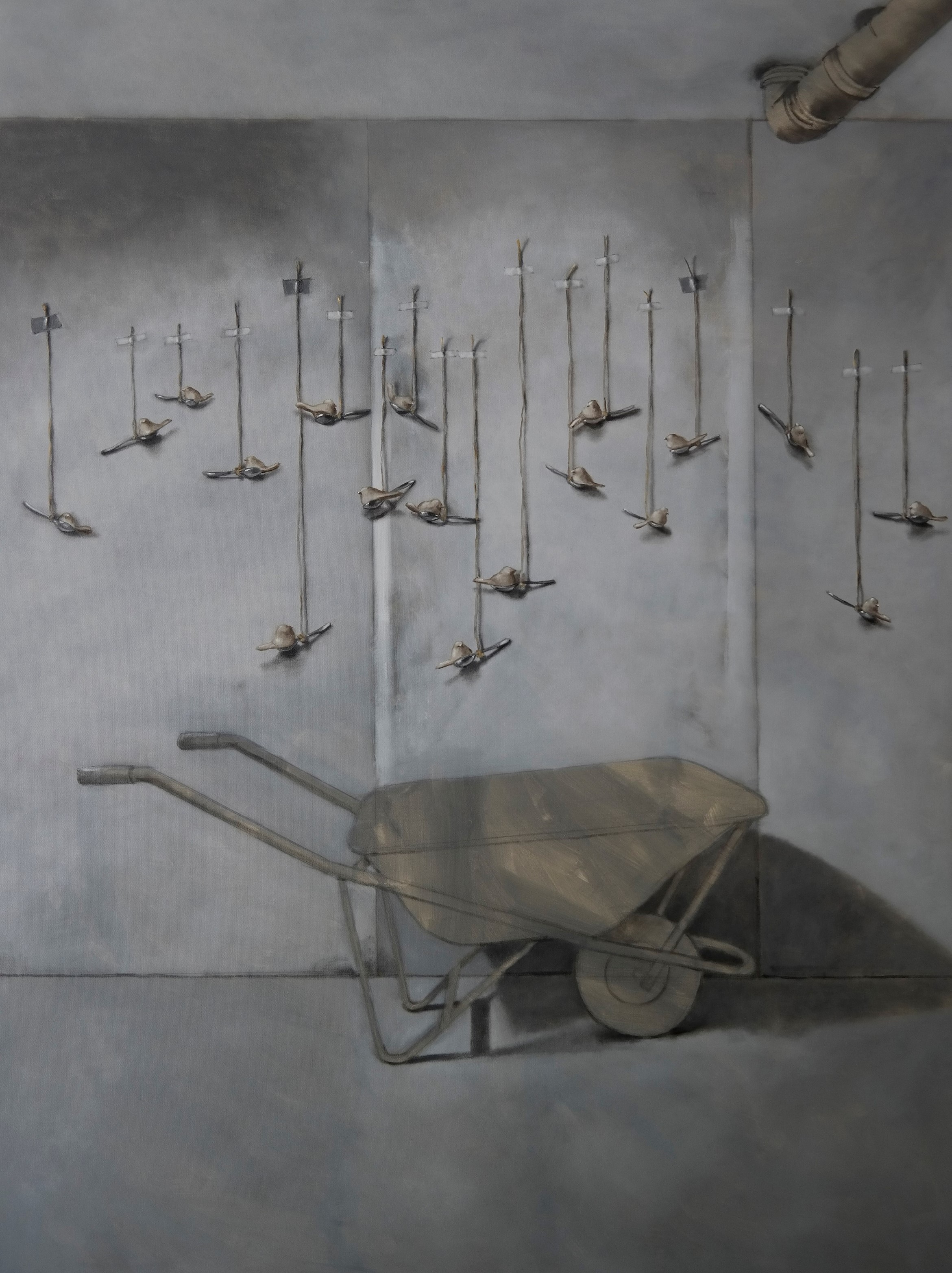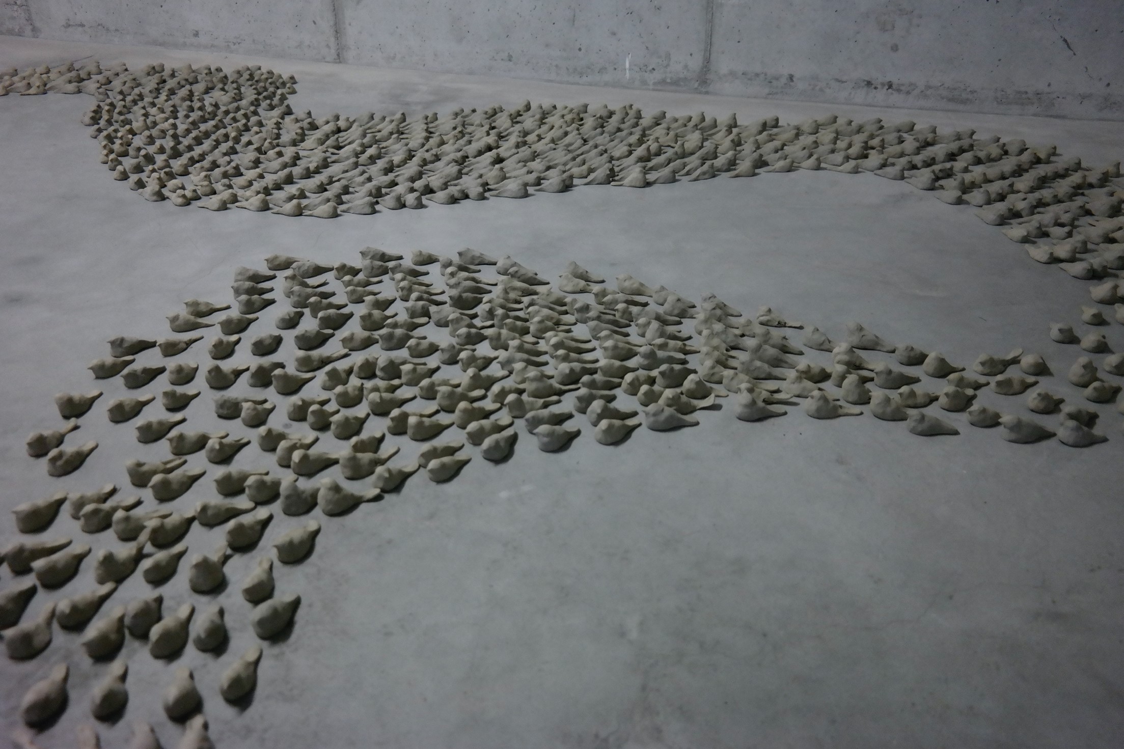 “Still Life” espone le opere dell’omonimo ciclo realizzato dall’artista di origine coreana Sun Hee Moon tra il 2020 e il 2022 e che comprende una quindicina di tele a olio, insieme a una grande installazione composta da qualche migliaio di uccellini (stornelli) in argilla.