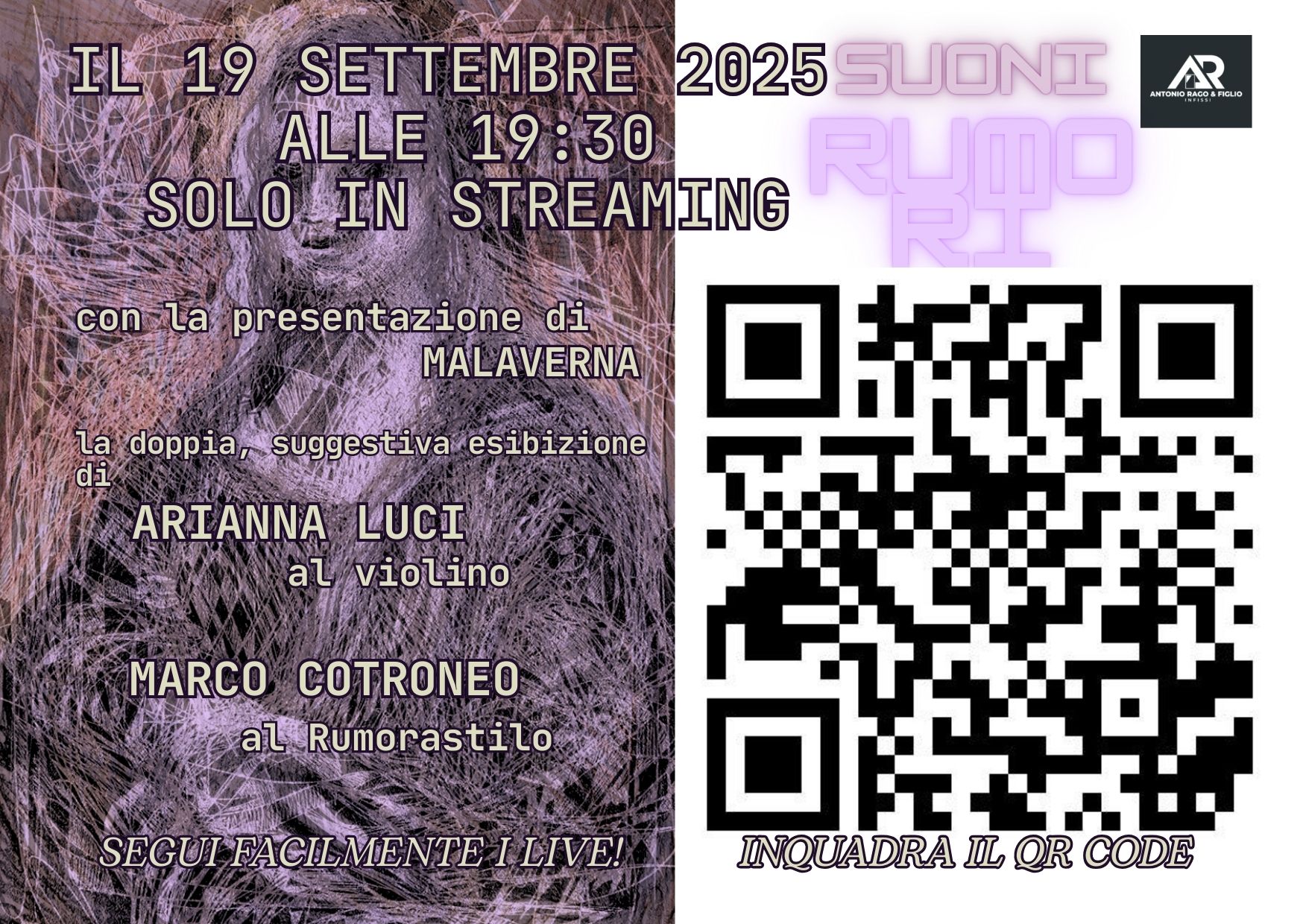 Nel contesto diffuso di mecenatismo reticente sul territorio, con l'idea di proporre spettacoli ambiziosi si apre un dialogo con le aziende lungimiranti e sensibili in ambito artistico, offrendo loro la possibilità di incentivare attività coinvolgenti e dal respiro innovativo. Sponsor della serata del 19 settembre 2025 a Corigliano - Rossano, per l'inaugurazione del nuovo showroom, sono "Antonio e Salvatore Rago - SAS infissi" che hanno scelto di affidarsi alla curatela, da parte dell'artista Marco Cotroneo, per uno show inedito che vede la partecipazione del Maestro Arianna Luci, violinista e artista di strada con la presentazione sotto forma di Lectio Magistralis del cantastorie Malaverna. Le esibizioni culmineranno nella presentazione del Rumorastilo, il nuovissimo strumento ideato da Marco Cotroneo che darà dimostrazione di un nuovo e "autentico" metodo performativo. Ospiti solo in lista ma lo spettacolo potrà essere seguito facilmente in diretta streaming tramite il seguente link https://www.twitch.tv/marcocotroneoart?sr=a