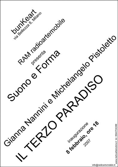 L'8 febbraio 2007, nello spazio bunKerart, Via Bellezza 8 Milano, RAM presenta Il Terzo Paradiso, ideato da Michelangelo Pistoletto.