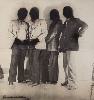 La mostra alla GAM ha al suo centro Gli uomini neri del 1970 (collezione La Gaia, Busca), una grande tela emulsionata su cui campeggiano le fotografie di quattro figure maschili con il viso e le mani dipinti di nero. Esposta alla galleria Christian Stein di Torino nel 1972, l’opera divenne il fulcro di una performance, che viene in questa occasione ricordata attraverso un collage e una serie di 14 fotografie (collezione Luigi Franco), opere nelle quali Ciam ha fissato i singoli passaggi dell’azione.