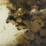 Ecco che, trasversalmente alla forte accezione di “pelle” -rimarcata dalla fruizione di NITIDO- il fremito di un’indole metamorfica, che proprio l’immagine simbolica di ripudiati tegumenti in balia dell’acqua riesce ad instillare, decodifica il dialogo visivo instauratosi con il lavoro dell’artista. In tal senso, la mediazione percettivo-concettuale offerta dalle vetrate dello spazio espositivo configura, nella curatela di Rossella Della Vecchia e Giorgia Loccarini, un richiamo all’habitat acquatico che permea l’onirica traversata di Idromanzia: il tutto si traduce nel dato esperienziale di Tegumenti Aquis che si rivela sospeso nel suggestivo scenario di un “acquario”.
