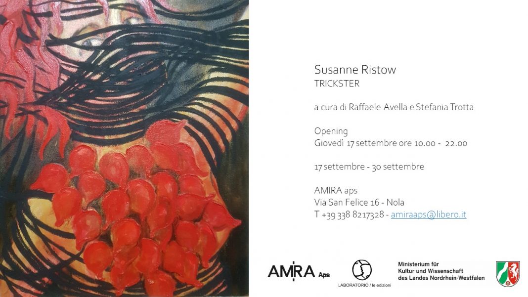 L’associazione Amira aps, in collaborazione con Il Laboratorio/ Le edizioni di Nola presenta Trickster, la personale di Susanne Ristow a cura di Raffaele Avella e Stefania Trotta.