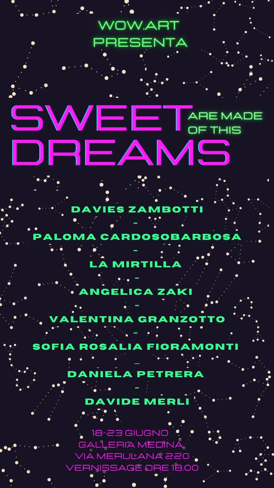 Dall’incontro tra arti e sogni nasce “SWEET DREAMS” la mostra che raccoglie al suo interno le opere di nove artisti che indagano la dimensione onirica nelle sue molteplici forme. Il programma espositivo prevede, nell’unico pomeriggio di domenica, un’esibizione di danza dal vivo.