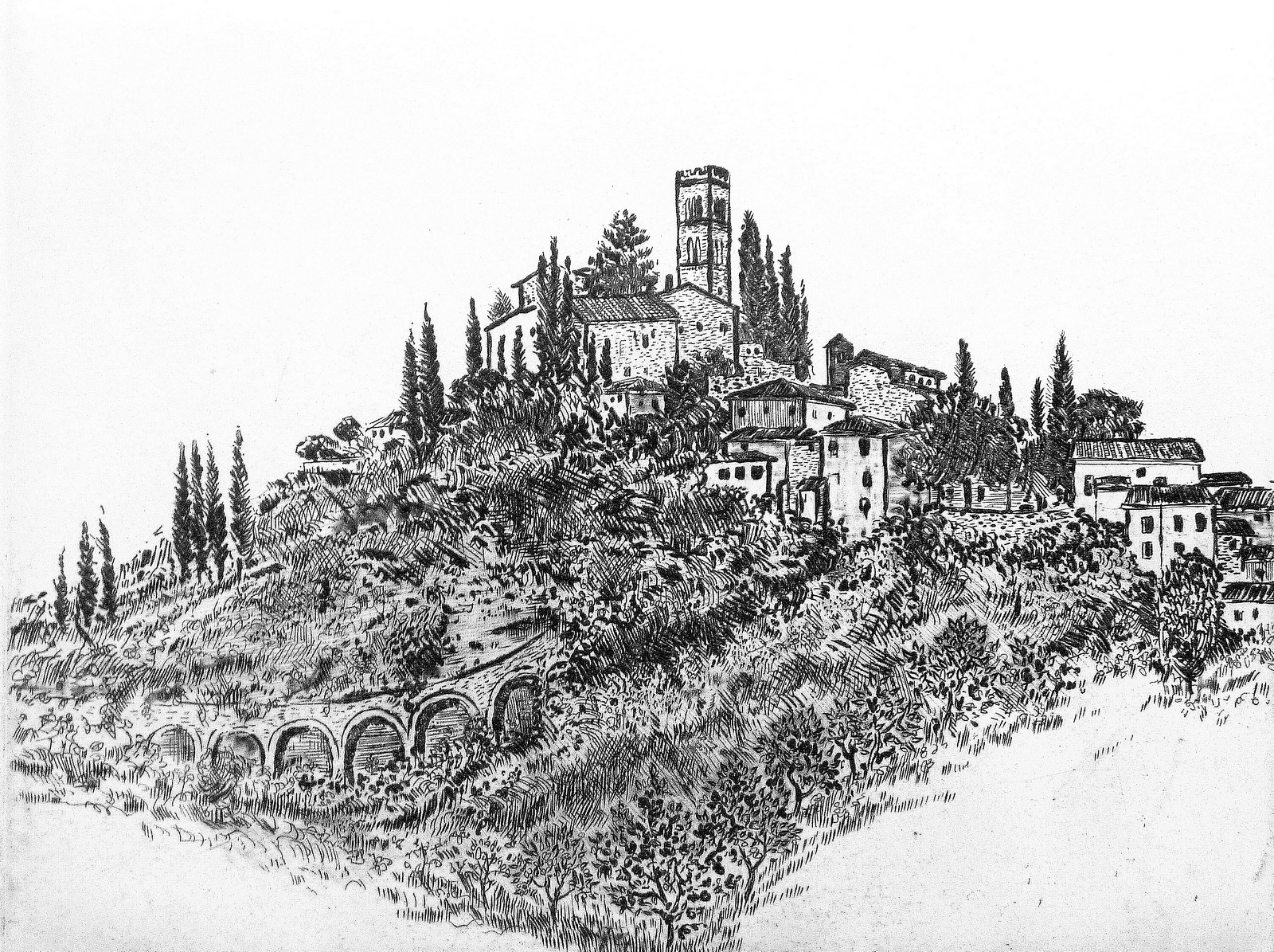 Il percorso espositivo comprende circa 100 opere che spaziano dal 1973 al 2023, tutte dedicate alla città di Barga e al paesaggio della Garfagnana. Soprattutto incisioni – acqueforti, acquetinte, puntesecche e plurilastre – ma anche dipinti ad olio su tela, sempre a tema barghigiano, che si affiancano alla consueta produzione dell’artista, legata alla mitologia, alla musica e al folklore. Un percorso artistico lungo 50 anni che raffigura la cittadella da diversi punti di vista; dall’iconico manifesto della Barga 1974 ad una Barga sognata, onirica, fino alle recentissime puntesecche, dove le figure femminili si fondono alla lussureggiante vegetazione che circonda uno dei borghi più belli d’Italia.