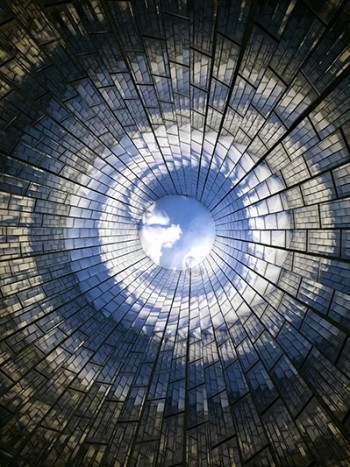 Composta di lunghe strisce di vetro a specchi che separano l’osservatore dall’ambiente circostante, “Entrances” induce una riflessione sui tipi di confini che attraversano il mondo. Alzando lo sguardo, ci si trova a confrontarsi tuttavia con l’immagine di un cielo cristallino, che crea un profondo contrasto con i materiali industriali che compongono l’opera. Questa contrapposizione nasce dall’interesse dell’artista per le grandi questioni ecologiche, un tema divenuto di forte importanza per Kuribayashi a seguito dell’incidente della centrale nucleare di Fukushima, nel 2011.