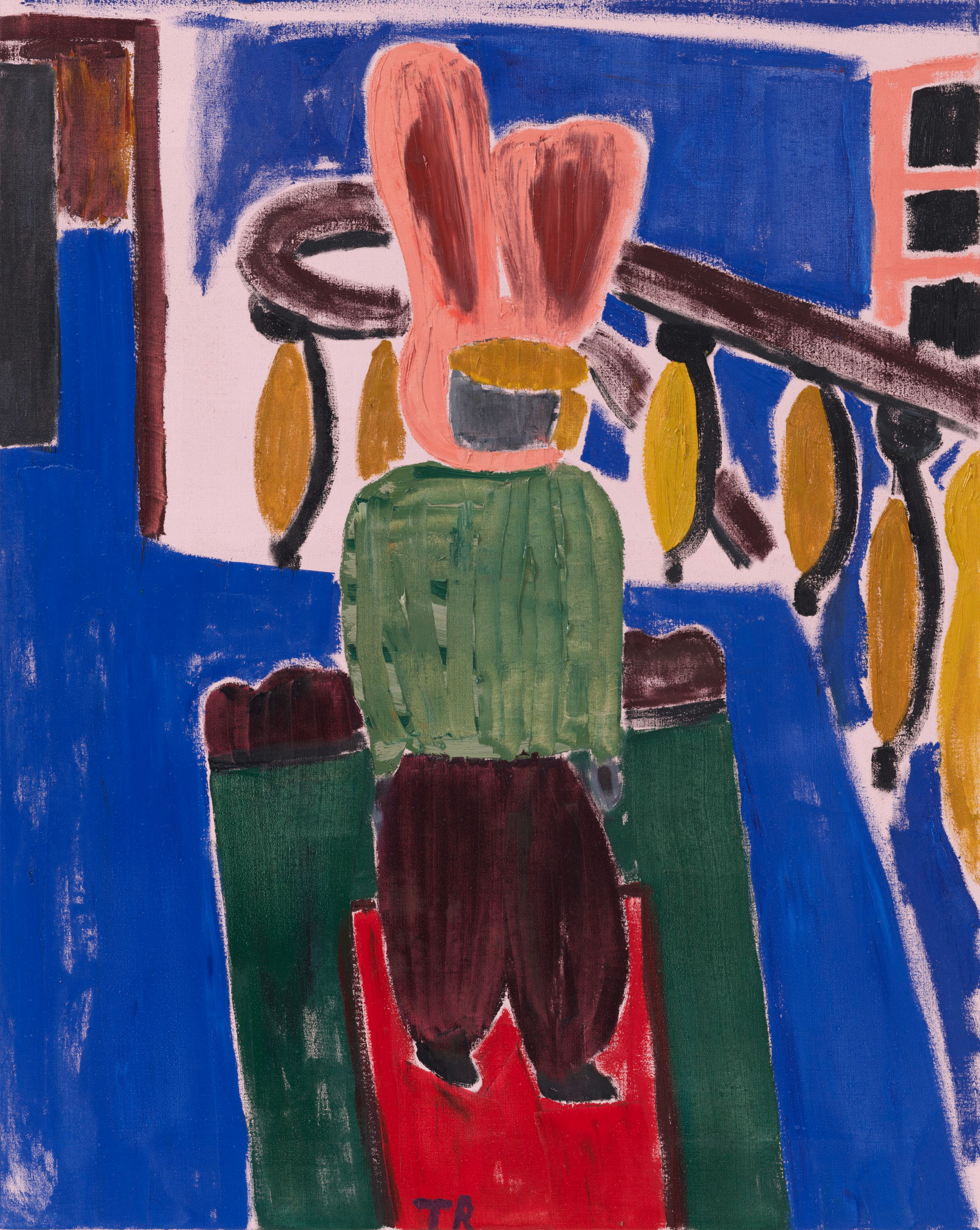 sia gli oggetti astratti che conosce solo con il pensiero. Le sue opere raccontano di qualcosa apparentemente molto concreto e figurativo. Qualcosa di semplice, che si può descrivere a qualcuno al telefono con poche parole. Ma a uno sguardo più attento, alla semplicità si aggiunge una sensazione scomoda. Metaforicamente parlando, osservare un’opera di Tal R è come percorrere una scala senza un gradino: una lacuna che ci lascia spiazzati, a mezz’aria. L’apparenza giocosa e felice lascia il posto a una lettura più profonda e sinistra, a tratti inquietante. Come in un sogno, le sue opere rompono i concetti convenzionali di spazio e tempo, rivelando aspetti della natura umana che rimarrebbero altrimenti celati. “È in questo aspetto rivelatore che risiede l’importanza dell’arte per la società”, definito da Tal R come “il “fantasma” nella macchina”.
