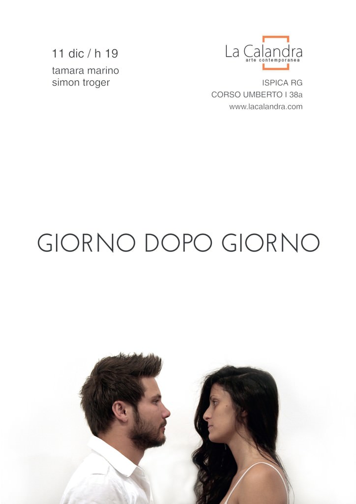 Domenica 11 dicembre alle ore 19,00 negli spazi espositivi della Calandra Arte Contemporanea sarà inaugurata la bipersonale “Giorno dopo giorno” di Tamara Marino e Simon Troger, a cura di Andrea Strano.