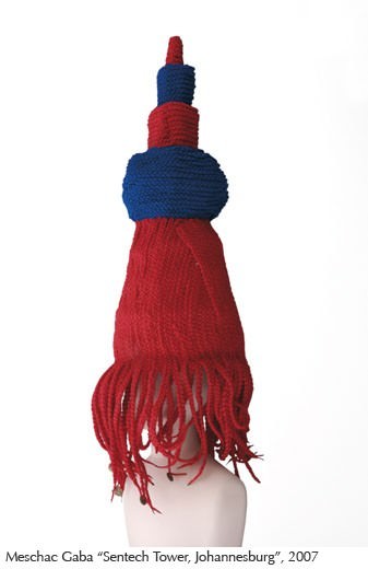 Con l’uso della tecnica dell’hair braiding, le sofisticate acconciature a trecce africane, l’artista beninese Meschac Gaba realizza preziose sculture indossabili in fibre naturali e sintetiche che ricalcano la forma di architetture simbolo del potere – economico, politico, culturale – e dell’identità nazionale di diverse città del mondo, come la Tour Eiffel o l’Empire State Building: oggetti ibridi e mobili, frutto di un processo di traduzione di forme e pratiche che mettono in crisi cornici, icone e clichè culturali.