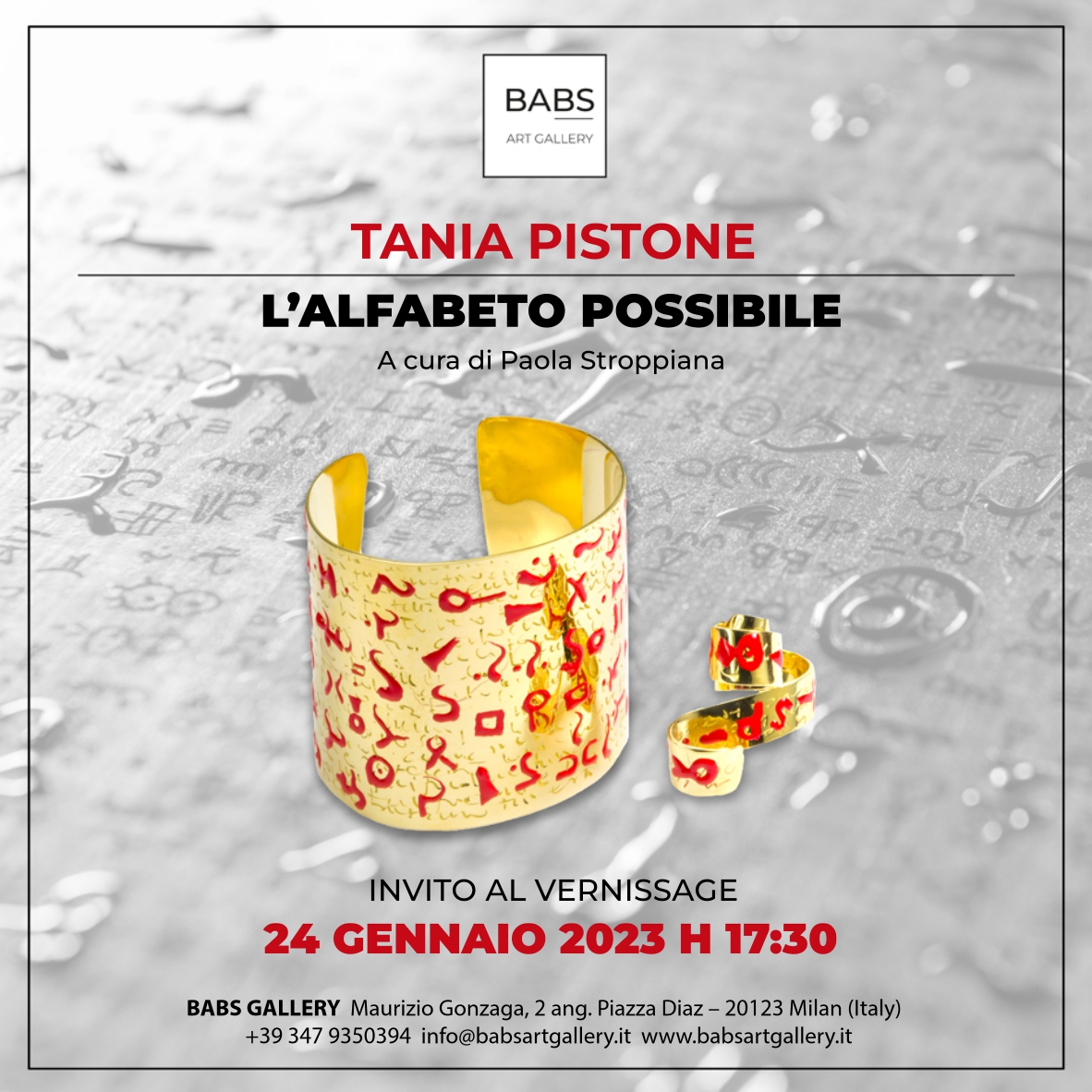 BABS è lieta di ospitare dal 24 gennaio 2023 la personale di Tania Pistone, L’alfabeto possibile, a cura di Paola Stroppiana: l’artista presenta gioielli e dipinti, molti dei quali inediti, posti in serrato dialogo.