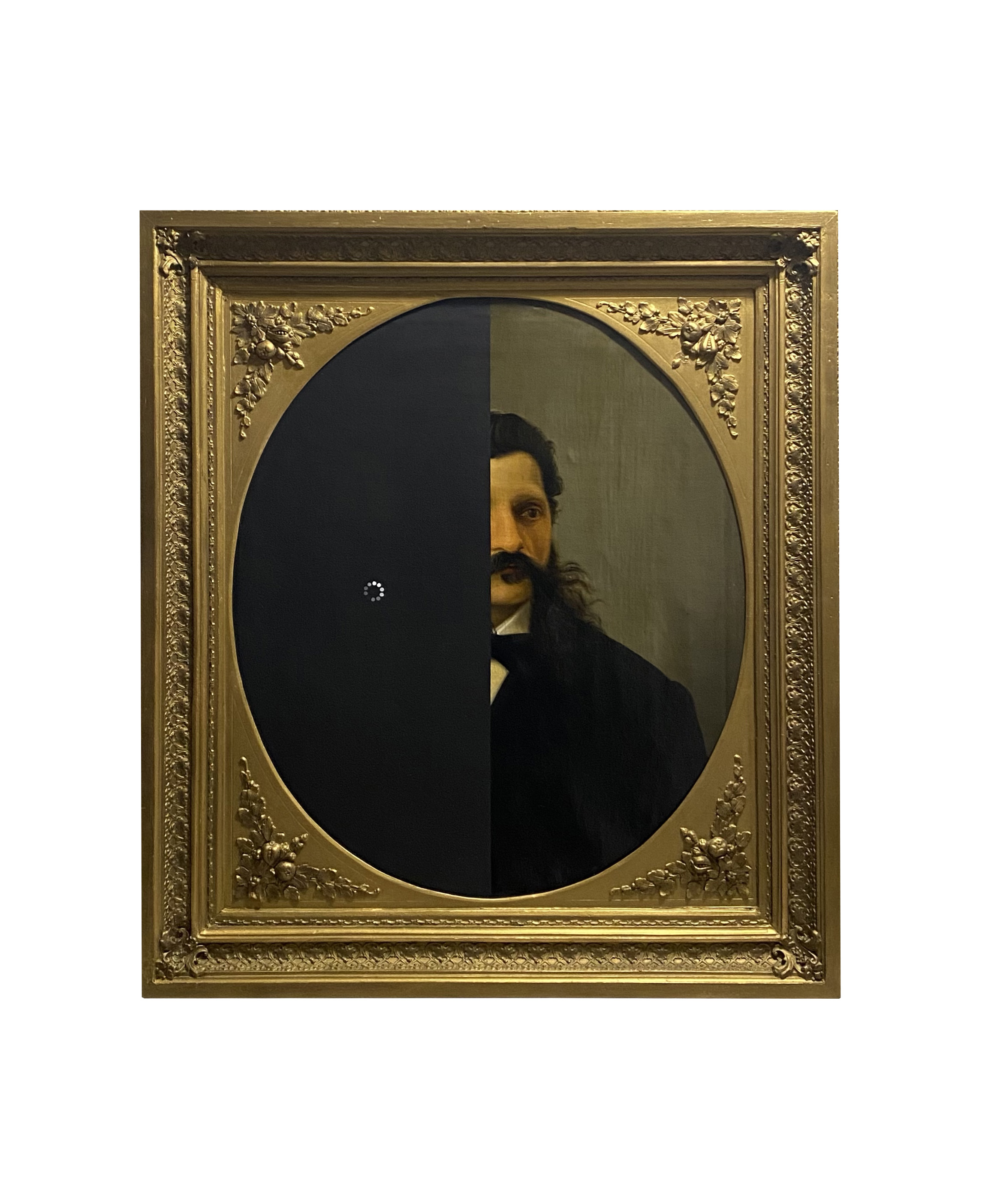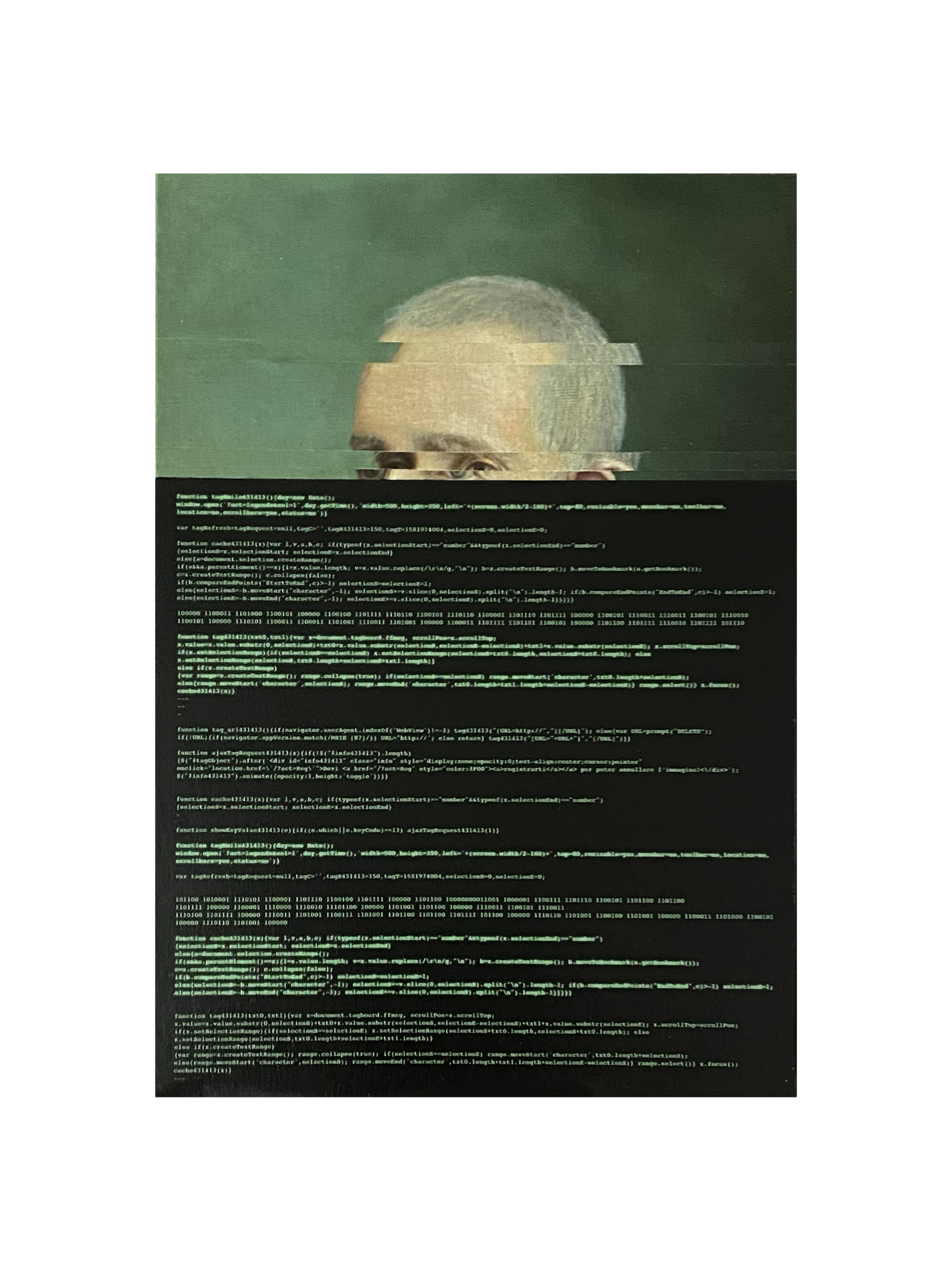 Nicolò Tomaini (Bellano-LC 1989) prende vecchi quadri, pezzi di cartoni d’imballaggio come elementi essenziali del suo lavoro che consiste nell’apporre sulle figurazioni elementi informatici, come la cancellazione dei pixel alle immagini computerizzate, o i residui degli imballaggi delle spedizioni delle multinazionali della logistica. Naturalmente questi sono elementi di “denuncia” del pericolo di “disumanizzazione” creata dalla tecnica, al di là dei grandi benefici che ha apportato all’uomo.