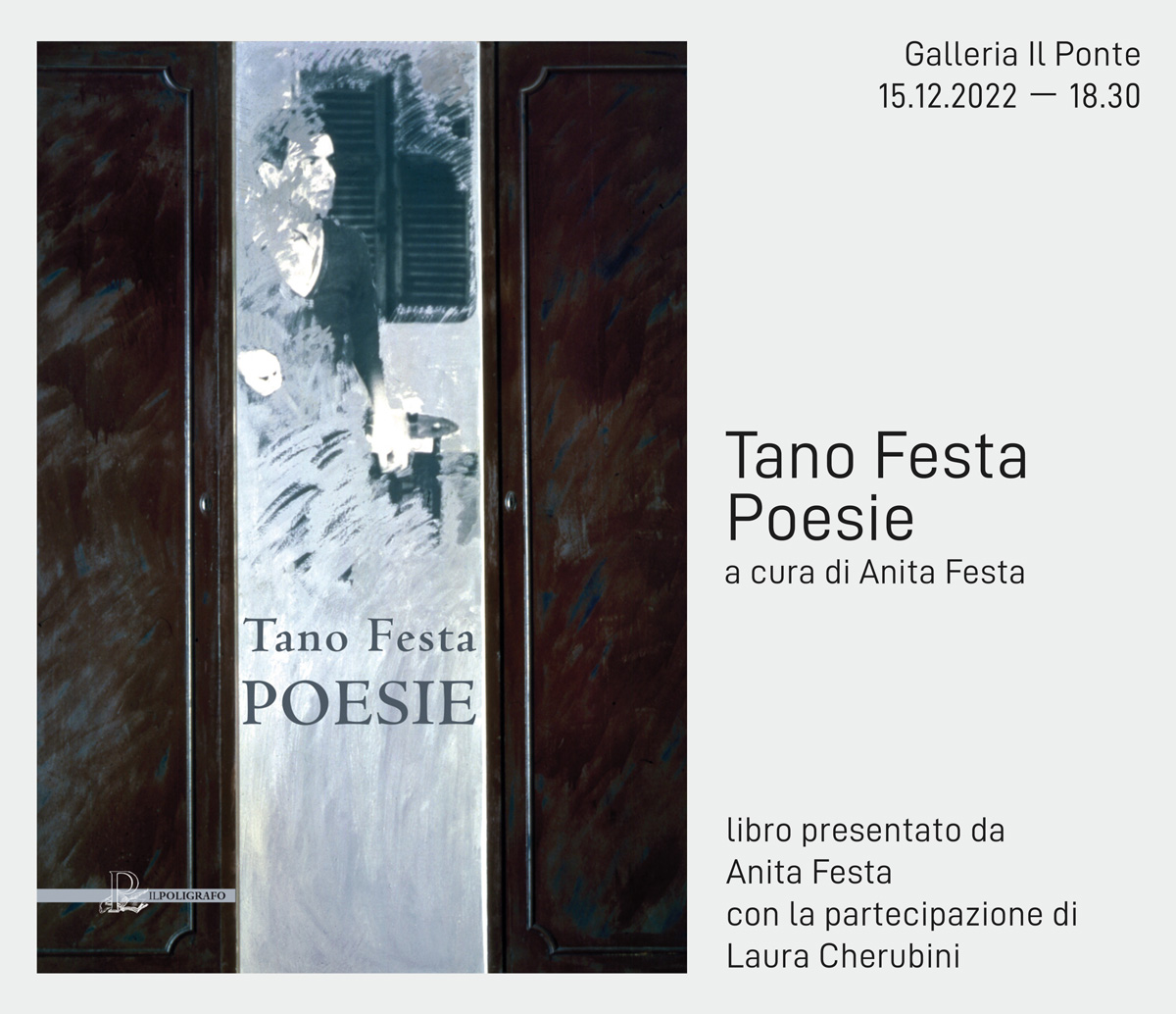 Nella galleria Il Ponte, con in corso la mostra Michel Parmentier. Opere e documenti (a cura di Guy Massaux, fino al 30 dicembre 2022), viene presentato da Anita Festa e con la partecipazione di Laura Cherubini il libro Tano Festa. Poesie. Il libro, ideato e curato da Anita Festa, presidente dell’Archivio Tano Festa, contiene 18 poesie - uniche rimaste tra le tante scritte dall’autore e raccolte dal grande collezionista e amico Giorgio Franchetti - affiancate da una selezione di riproduzioni di opere dell’artista e di fotografie che lo ritraggono in diversi momenti della sua vita. Dice Anita…”La poesia non è stata solo un evento letterario della sua vita, ma è il fil rouge che segna tutta la sua opera pittorica…”