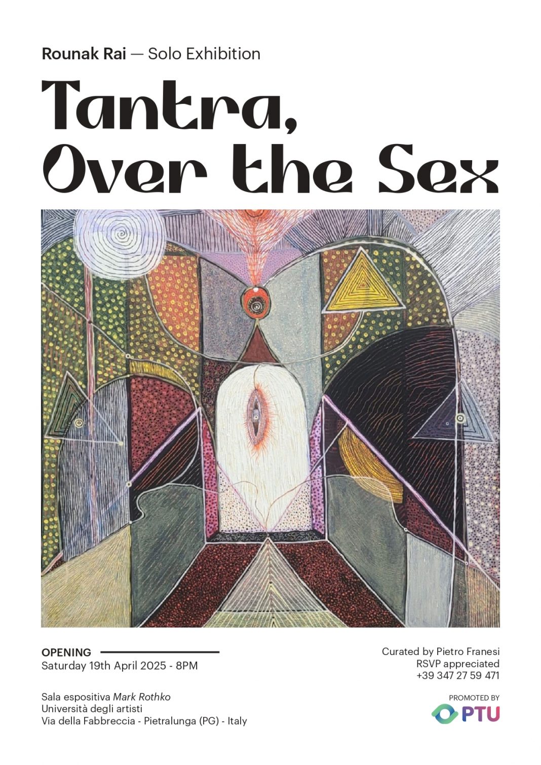 Rounak Rai con 27 opere esplora il concetto del Tantra e del suo rapporto con il sesso, affrontandolo su un piano mistico, trascendentale, come uno dei percorsi verso l’illuminazione spirituale.