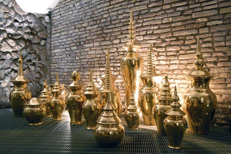 Tarshito, come da buona chioccia cova le uova delle nuova umanità: architetture che sbocciano sino a formare archi, pesci che gorgheggiano suoni d’amore, vasi contenitori di energie vitali